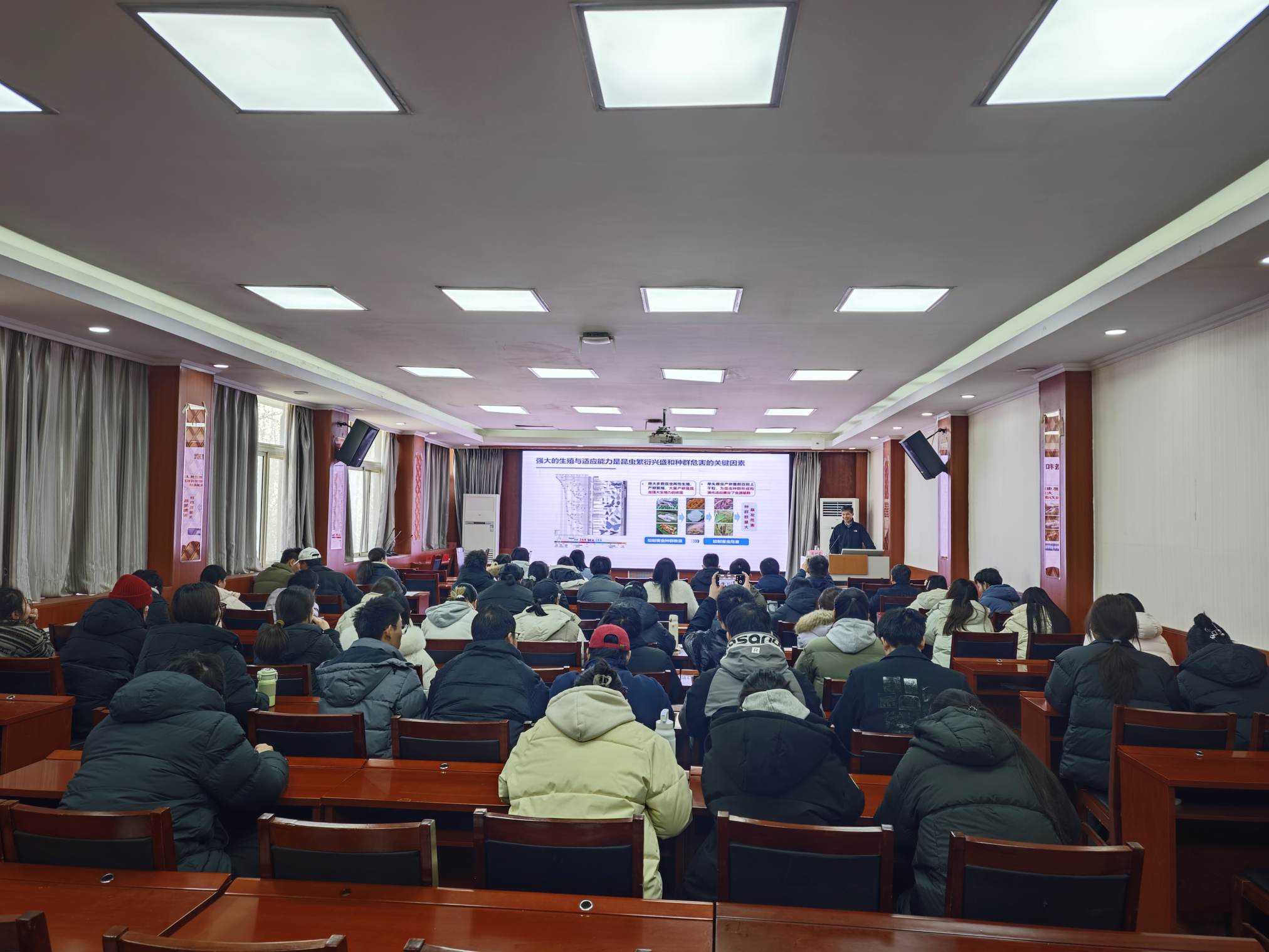 本网讯(通讯员 杨树琼)2026年2月2日下午,应我校生命科学学院邀请,河南大学周树堂教授为我校师生作了题为《昆虫与植物信息流中的攻和防》的学术报告。报告会由生命科学学院院长牛秋红主持,学校相关领域师生代表参加了报告会。