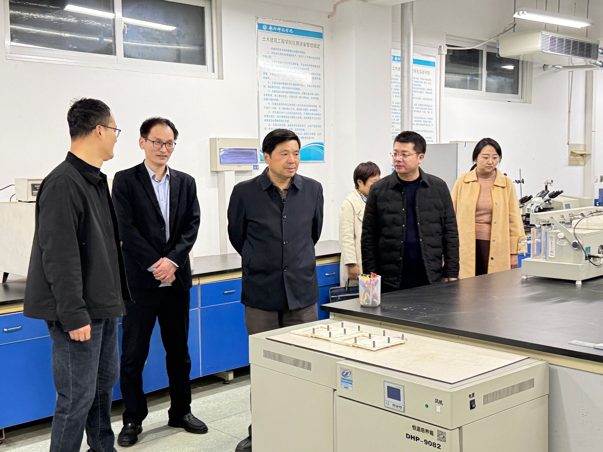 11月12日,南阳市科技局二级调研员王宇、平台科副科长冀楠楠、一级主任科员张天云一行四人莅临我校,实地考察了南阳市玉产品重点实验室和南阳市水处理技术与资源化利用重点实验室的建设情况。科技处副处长张淼、平台科科长王鹏飞陪同考察。