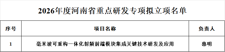 本网讯(通讯员 杨仕伟 张 浩)近日,河南省科技厅公布了2026年度河南省重点研发专项和科技攻关项目立项结果。继李玉英、段鹏飞和李丹丹老师之后,惠明老师于今年再次获批重点研发专项,我校取得了连续四年获批该类项目的佳绩;张英君老师作为联合申报人参与的外单位同类项目也成功获批。同时,我校共有27个科技攻关项目获批立项,立项率75.0%,获经费资助项目数创历史新高,且在全省师范类高校位居前列。