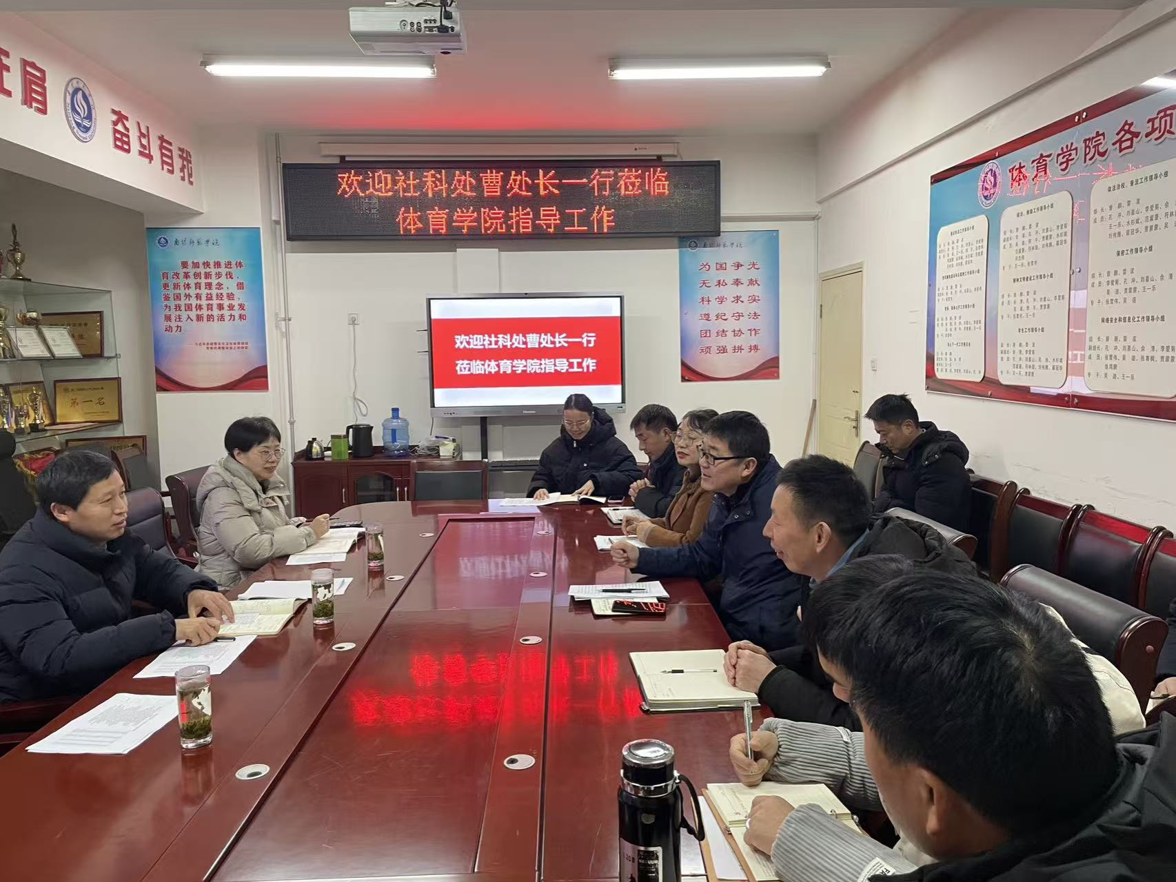 本网讯(张育枫/文 张雪伟/图)1月26日上午,社科处处长曹天成带队赴体育学院开展2026年度国家社科基金项目申报专项调研。院长刘宗豪主持会议,班子成员、学科带头人及拟申报教师代表参会。