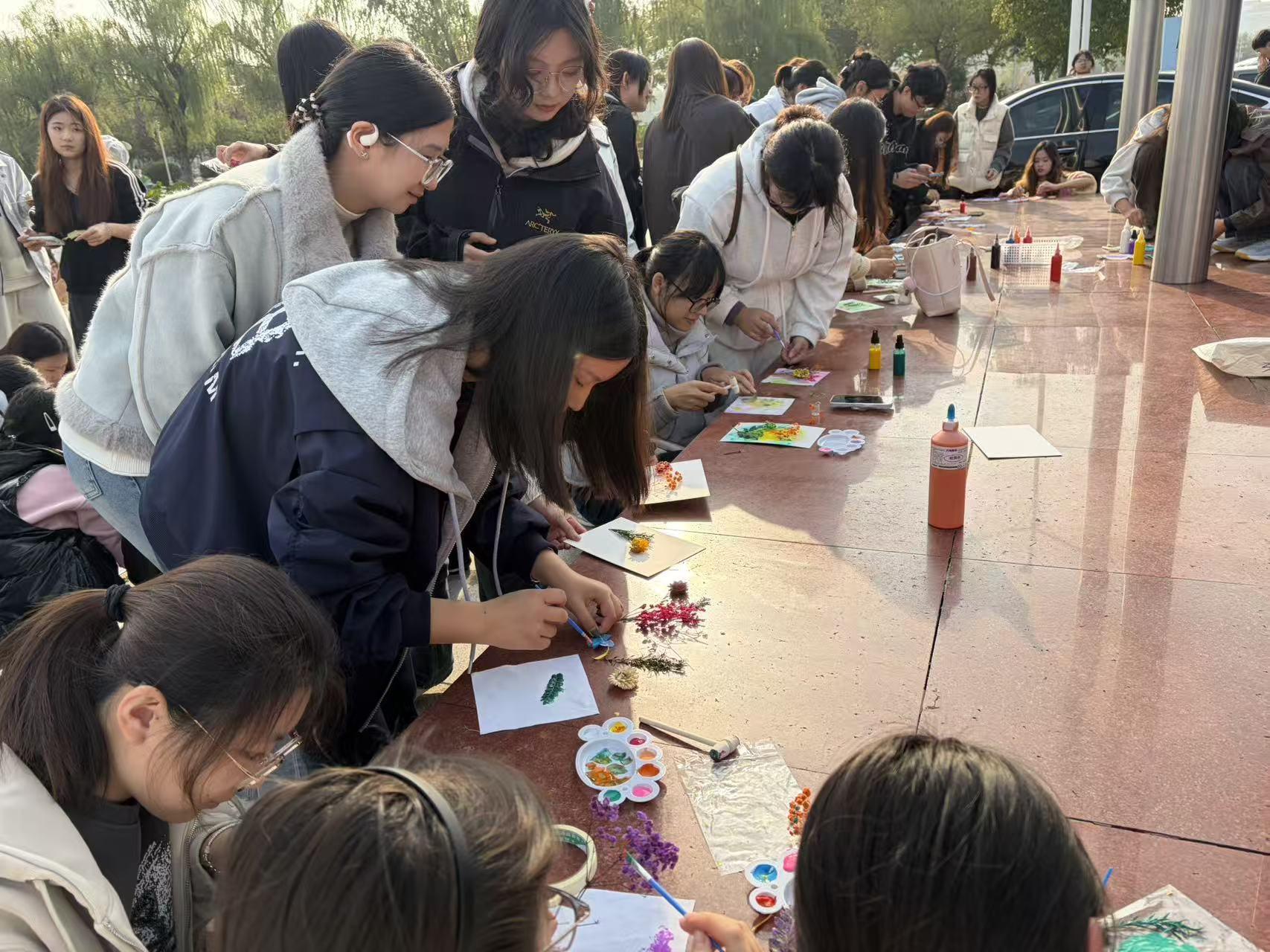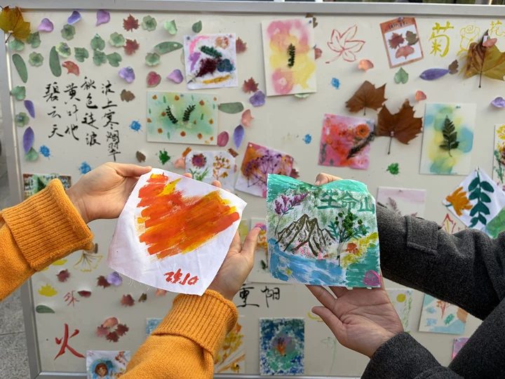 活动现场菊香弥漫,创意涌动。同学们在志愿者的引导下,或执叶拓染,将菊花的脉络永恒定格于素布之上;或挥毫点彩,让重阳的祝福跃然于书签之间。活动将传统与创意相融合,让重阳文化在青春手中焕发新意。