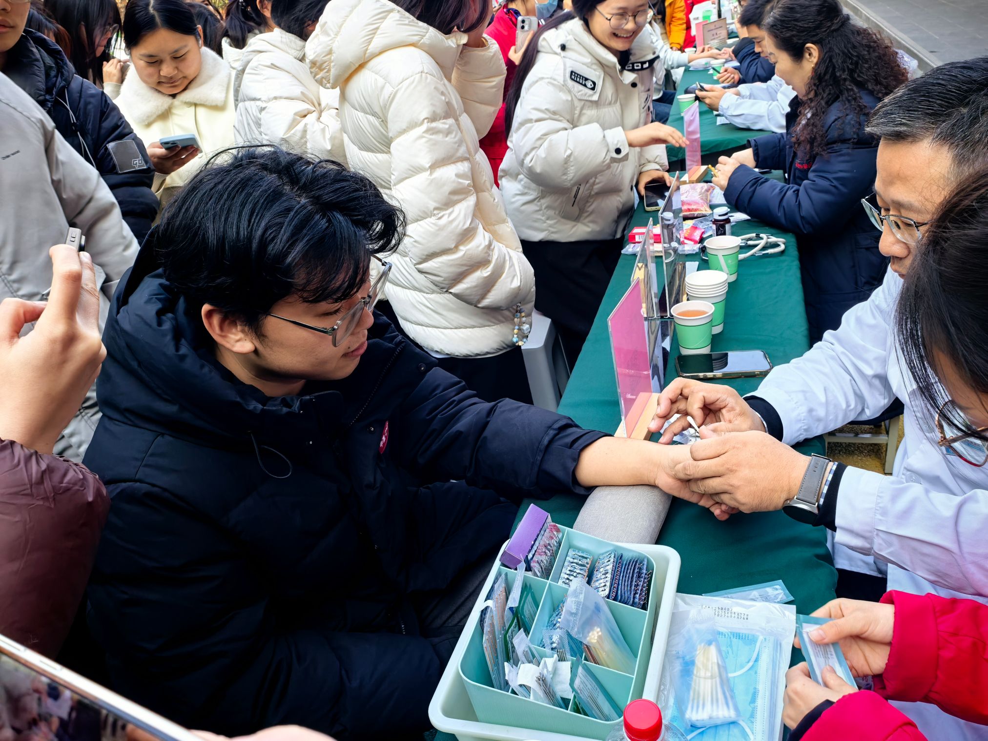 活动围绕中医养生主题,设有健康咨询、体质辨识与茶饮体验等互动环节。专业医师现场为学生提供一对一健康咨询,讲解冬季养生和疾病预防知识,并指导学习穴位按摩技巧。茶饮体验区备有多种草本材料,学生可亲手调配、品尝养生茶,在实践中感受中医文化。