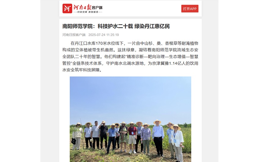 河南日报客户端:南阳师范学院:科技护水二十载 绿染丹江惠亿民 -