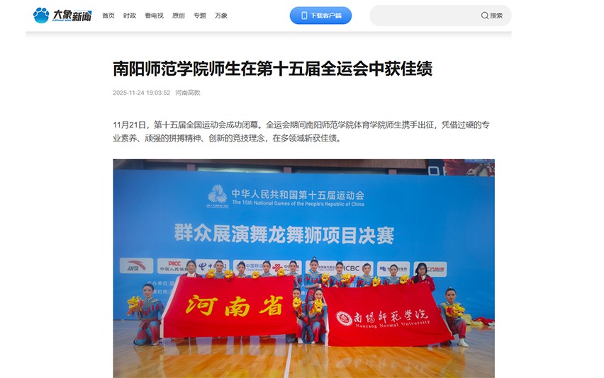 大象新闻:南阳师范学院师生在第十五届全运会中获佳绩 -