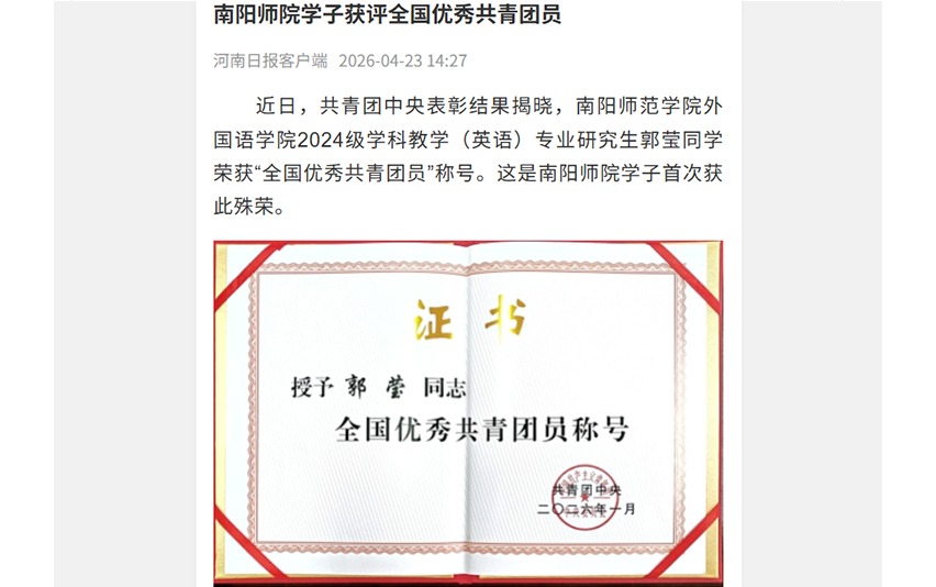 河南日报客户端:南阳师院学子获评全国优秀共青团员 -