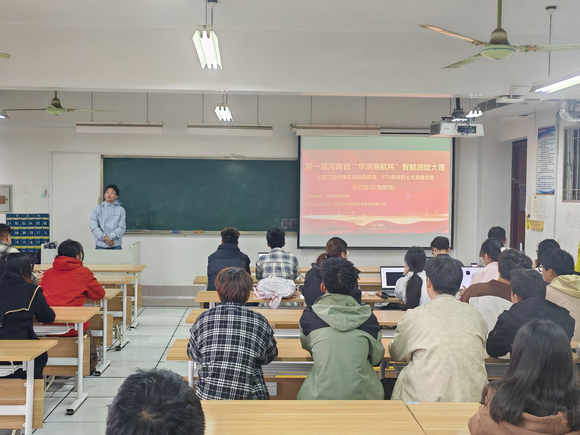 本网讯(通讯员王舜瑶/图文)2025年11月15日上午,地理科学与旅游学院组织学生参加了由上海华测导航技术股份有限公司提供的“华测导航杯”智能测绘大赛线下培训。此次培训在华测公司工程师梁亦琮的指导下顺利进行,为学生提供了扎实的技术支持。