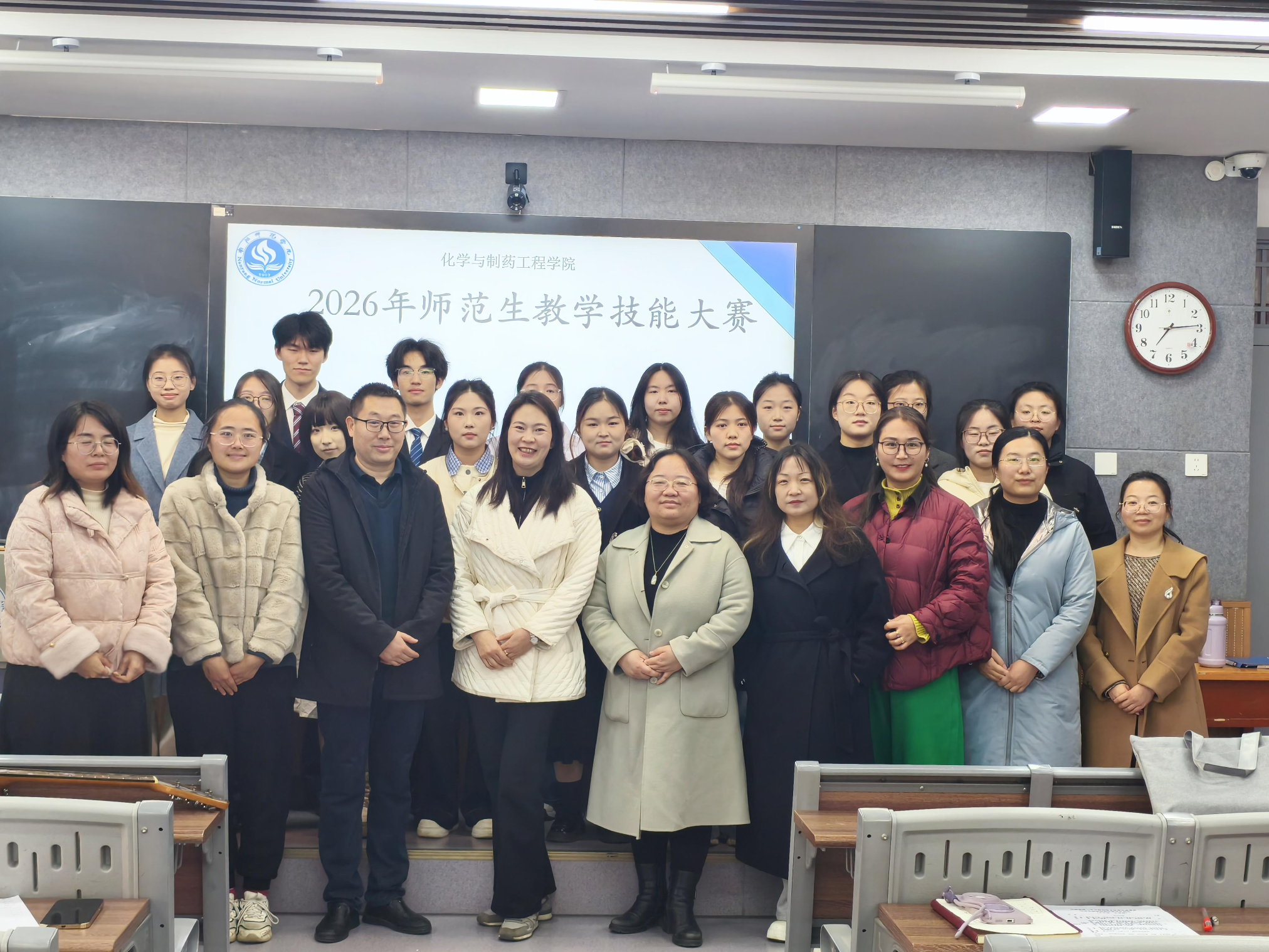 本网讯(任雨涵/文 杨普泰/图)为深入落实新时代师范生培养要求,提升学生专业素养与实践能力,化学与制药工程学院于2026年3月18日下午在博睿楼209和216教室举行2026年师范生教学技能竞赛。本次比赛以“以赛促学、以赛促优、以赛促强”为宗旨,旨在激发师范生的学习热情与创新能力,为培养高素质专业化教师队伍打下坚实基础。