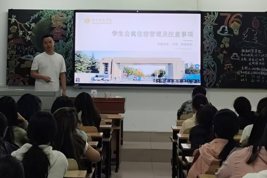最后,郭飞对本次班会进行了总结。他强调,公寓是我们在校期间共同的家,其安全与文明直接关系到每个人的切身利益。希望全体同学以此次班会为契机,立即行动起来,进行一次彻底的宿舍安全自查,争做公寓安全的“守护者”和文明风尚的“践行者”,携手将我们的公寓建设成为安全、文明、温馨、和谐的美好家园。