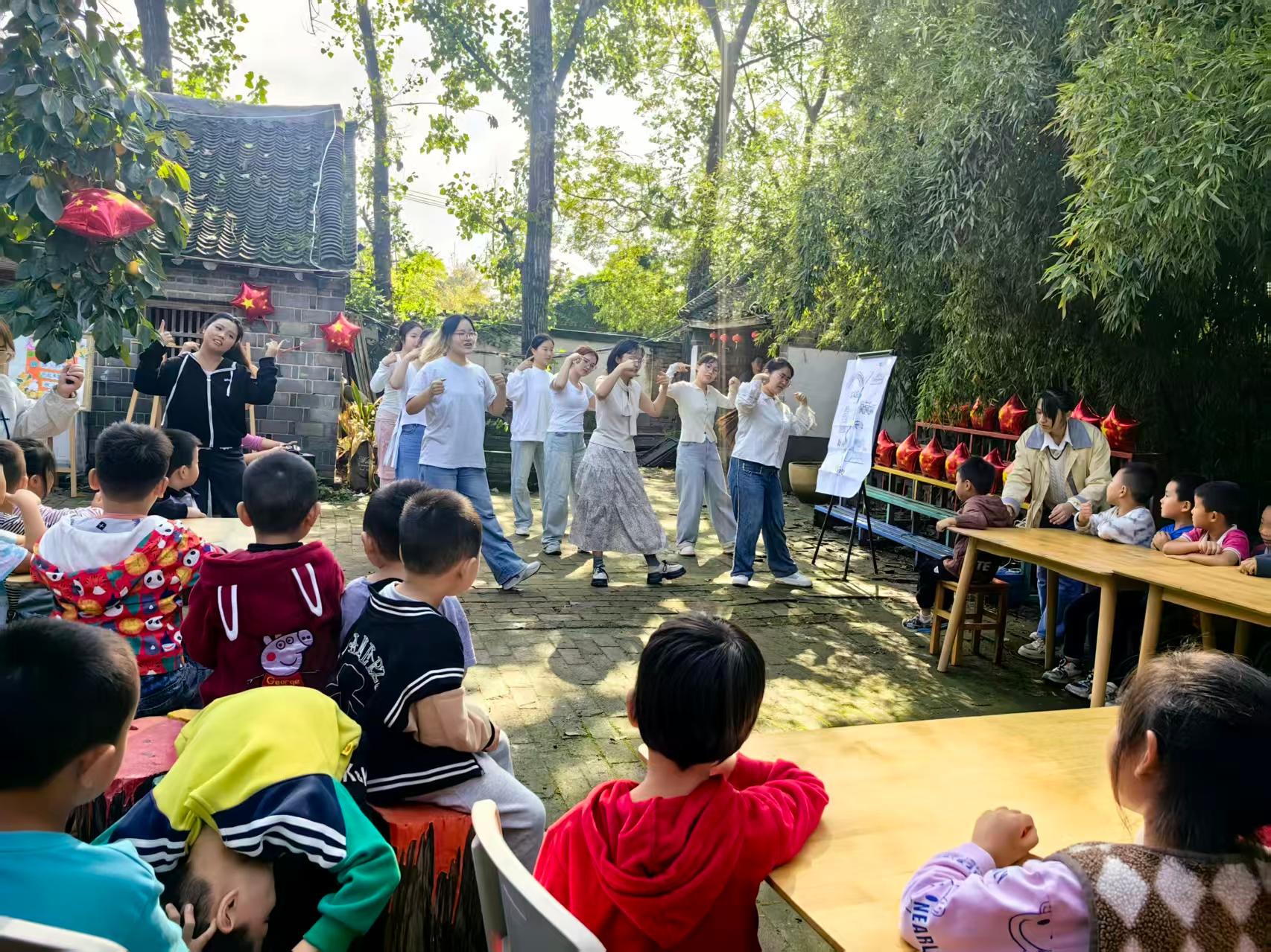 (通讯员 张佳瑶 宋施雨 )灯影重重,言笑晏晏。金秋送爽,丹桂飘香,在国庆节与中秋节双节将至之际,南阳师范学院教育科学学院学前教育专业学生在李辉院长、郑明老师、王君萌老师的带领下,于9月30日在画家村举办“童心迎双节 家国共团圆”主题活动。大学生与小朋友们欢聚一堂,开展舞蹈、歌唱、情景剧、手工创作、游戏等多样形式的活动,让孩子们在欢乐中感受家的温暖与国的荣光,共赴一场兼具童趣与家国情怀的节日盛宴。