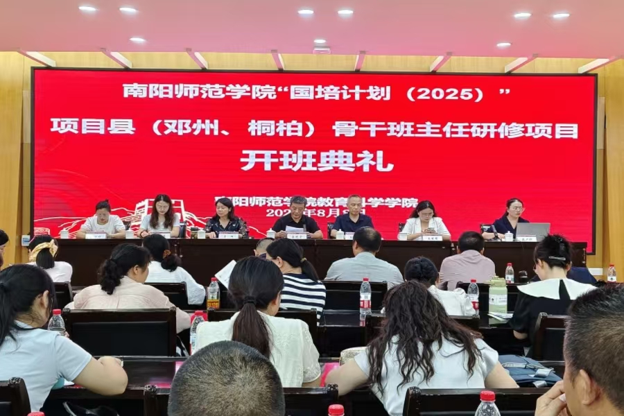 8月8日下午,南阳师范学院“国培计划(2025)”项目县(邓州、桐柏)骨干班主任研修项目开班典礼在南阳师范学院科技大楼三楼报告厅举行。南阳师范学院教育科学学院党委书记李晓宏、院长李辉、副院长马福全、培训管理办公室主任王君萌、培训专干高广骅出席开班典礼。
