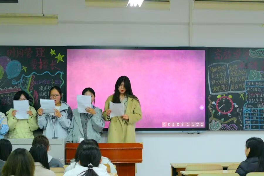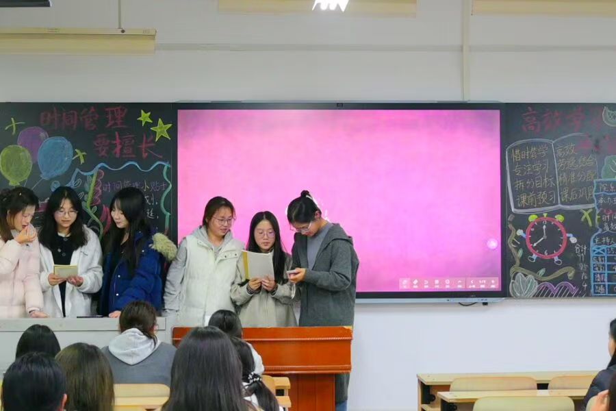 班会伊始,老师以“是否想复习却不知如何下手?”贴近学生日常的问题切入,迅速引发共鸣,直观点明本次班会聚焦的“时间失控”“学习低效”等核心痛点。让同学们清晰认识到提高时间管理与高效学习能力的必要性。在核心分享环节,老师结合大学生学习特点,结合生活真实案例,提出多元解决方法,如确定坚定目标,屏蔽干扰信息,充分利用碎片化时间以及提前规划等。班会最后,老师强调,时间管理与高效学习是通过实践不断优化的能力,鼓励同学们从制定一份计划表等小事做起,逐步养成良好习惯。同时,老师表示他会持续关注同学们实践情况,为大家提供进一步的指导与帮助。