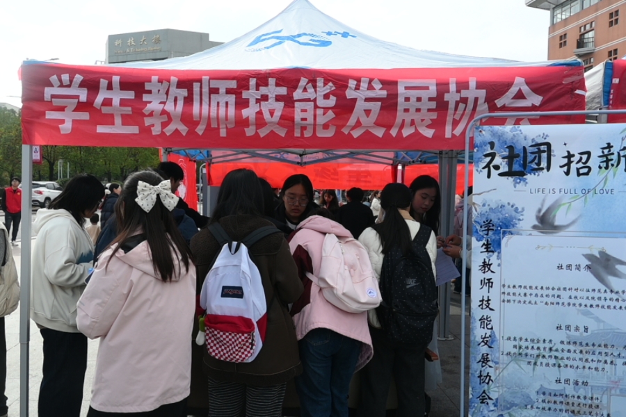 本网讯(通讯员 宋施雨 林心语/图 成思瑶/文)为丰富校园文化生活,促进学生全面发展,校团委、社团联合会于11月8日在中区逸夫楼广场组织开展“百团大绽”社团招新活动。教育科学学院的教师技能发展协会、大学生心理学社共两个社团参与招新,全体学生踊跃报名。