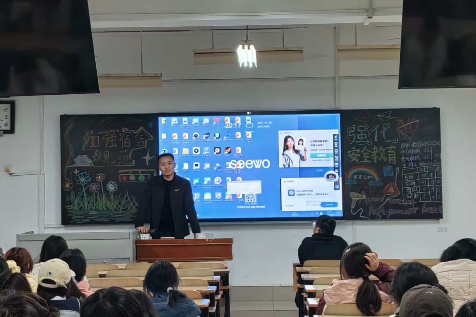 本网讯(通讯员 宋施雨 丁玉欣/图文)为切实强化学生宿舍安全管理,全面提升学生安全防范意识与自我防护能力,筑牢校园安全防线,教育科学学院于11月23日在逸夫楼N506、N507、N508组织召开“加强宿舍规范,强化安全教育”主题班会。本次班会由25级本科辅导员郭飞主持,全体25级学生到场参加。
