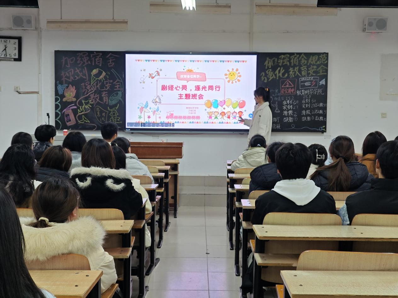 本网讯(通讯员 宋施雨 张智玲/图 陈书玲/文)为进一步推进学生心理健康教育工作,营造阳光、积极的校园文化氛围,教育科学学院于2025年10月23日开展了以“剧译心灵,逐光同行”为主题的心理情景剧演绎班会。本次活动将舞台剧的艺术形式与心理成长教育深度融合,为全体同学带来了一场触及心灵、精彩纷呈的视听盛宴。