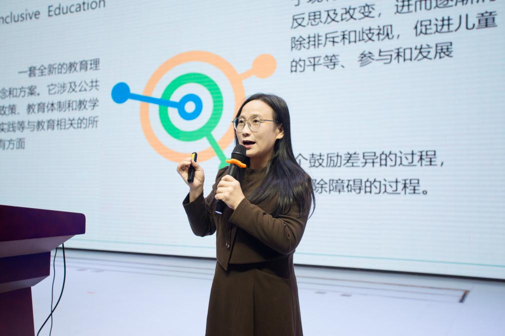 蔡蕾园长在“生命影响生命”的主旨报告中,深刻阐释了融合教育实践中师德的真谛:“师德不是口号,而是藏在教育日常中——是因材施教的精准、有教无类的公平、手把手的帮扶、心对心的包容。”