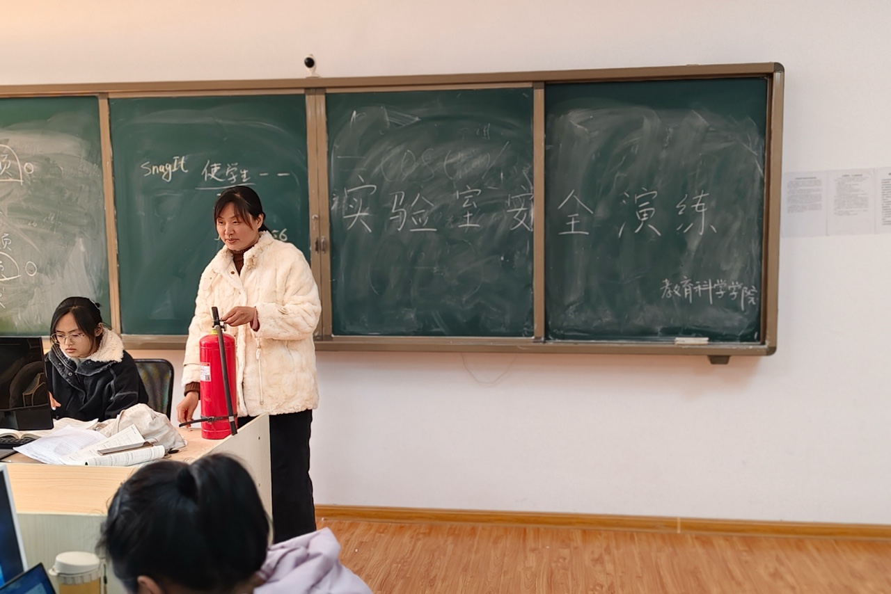 本网讯(通讯员 宋施雨 付子玉/图文)为切实加强实验室安全管理,提升师生消防安全应急处置能力,防范化解实验室安全风险,教育科学学院于11月25日在科技楼209召开实验室消防安全知识讲座和演练。本次会议由林青松、贺林珂负责,实验室老师和部分学生到场参加。