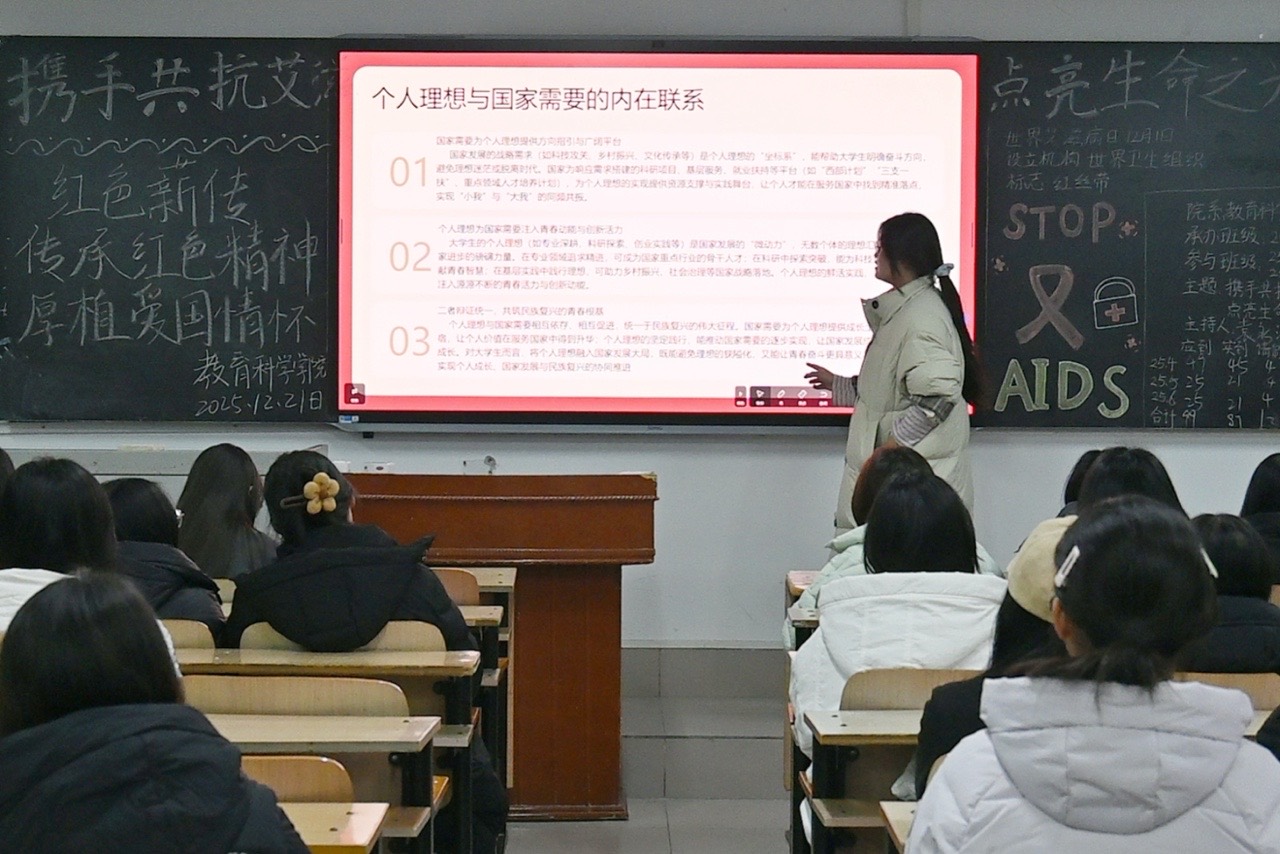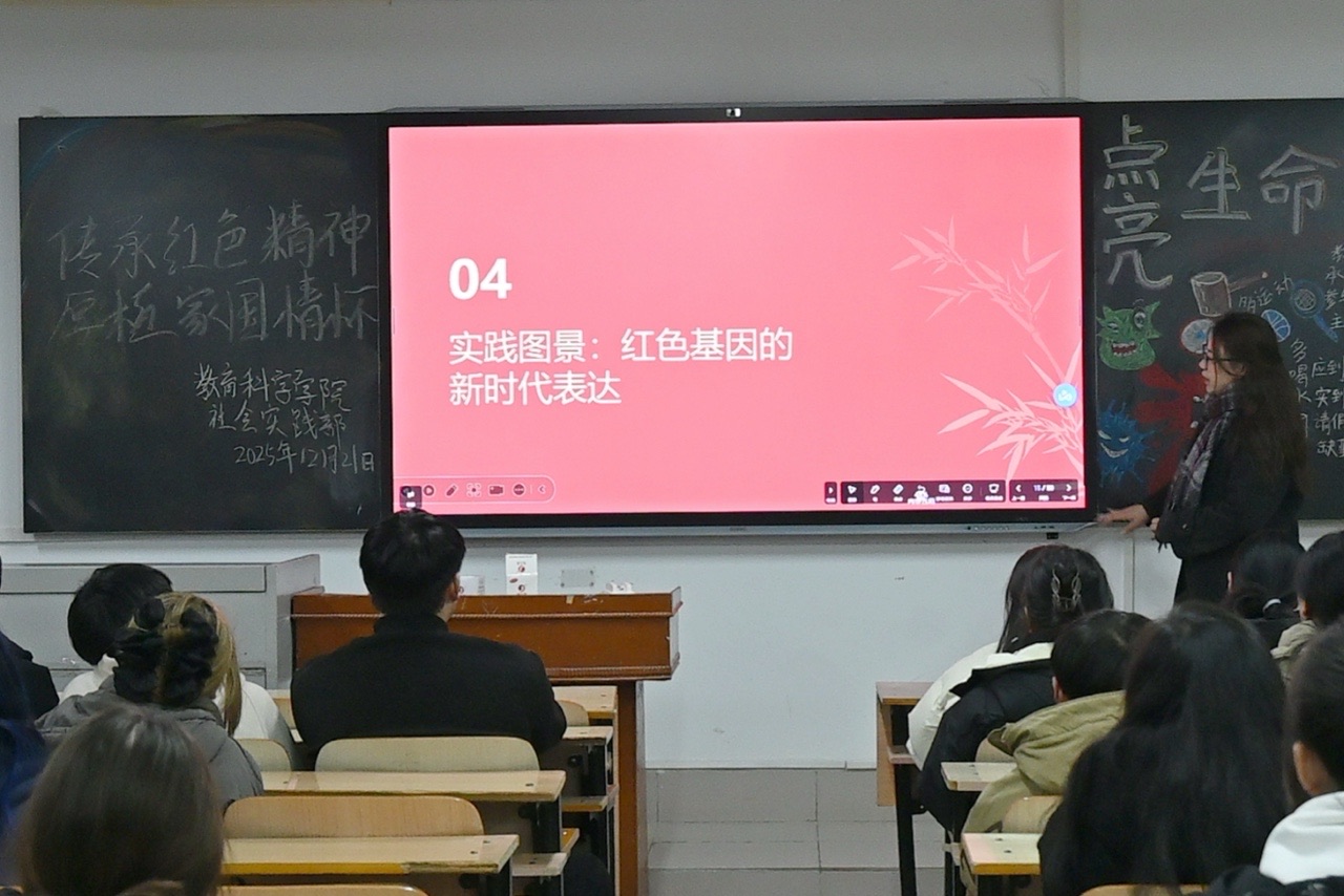 本网讯(通讯员宋施雨 曹惠媛/图 付子玉/文)为传承红色基因,弘扬革命精神,引导青年学生厚植家国情怀,勇担时代使命,教育科学学院于12月21日在逸夫教学楼N506、N507、N508组织开展“传承红色精神,厚植家国情怀”主题班会,25级本科辅导员郭飞主持,全体25级学生到场参加。