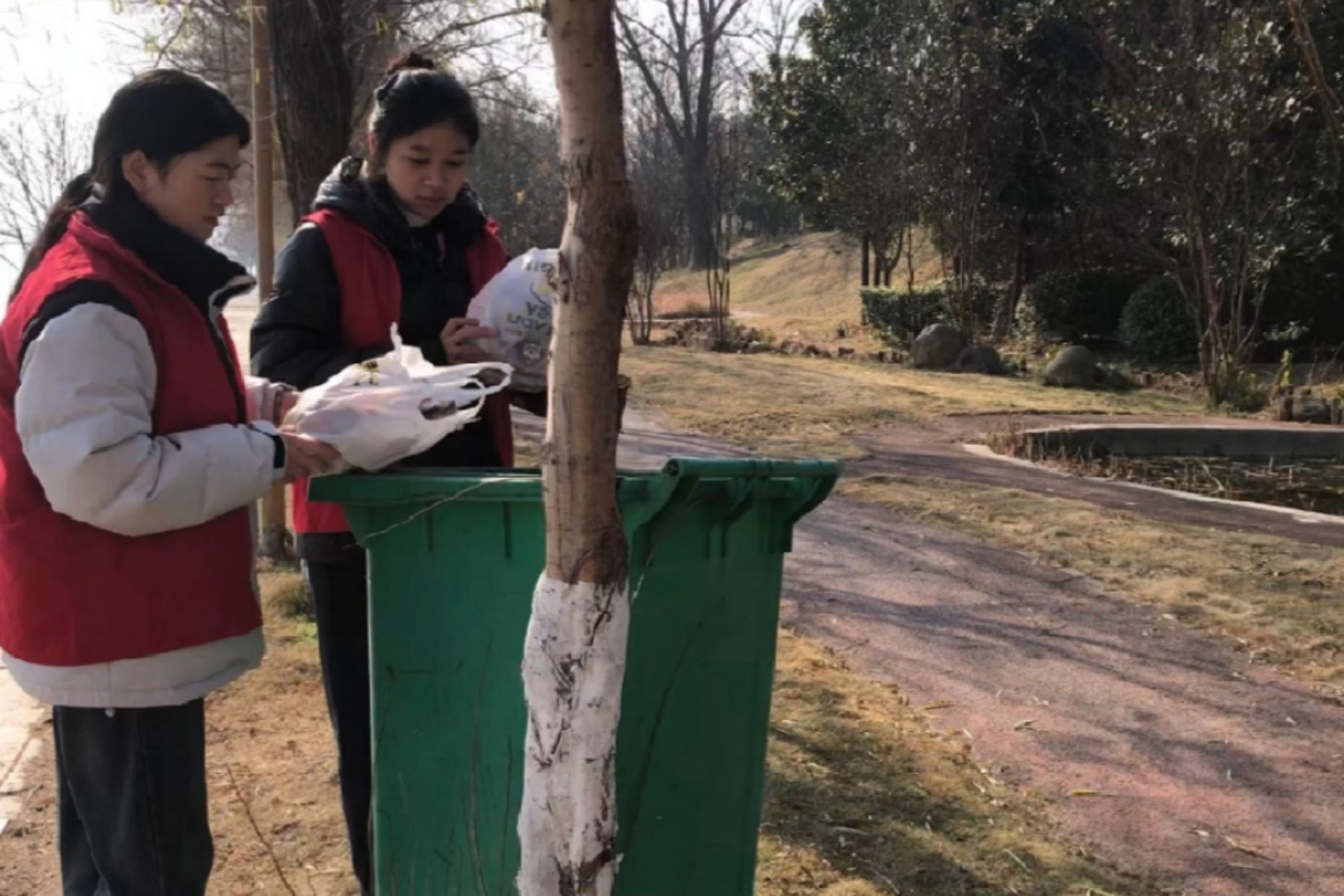 活动当天,志愿者们在校门口集合后,前往白河指定河段,按照分工迅速投入垃圾清理工作。他们仔细捡拾散落在河岸草丛、步道的塑料瓶、食品包装袋等各类垃圾,同时将可回收物与其他垃圾分类归集,统一转运至指定收集点。整个过程中,志愿者们严格遵守安全规范,规范使用工具,确保活动安全有序开展。