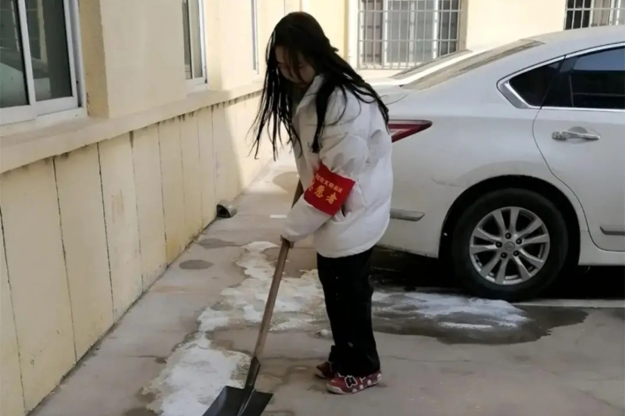 22级4班齐国云参与了家乡社区的街道清扫志愿服务。活动中,她与其他志愿者一起清理路面垃圾、捡拾绿化带杂物,在寒风中用双手让街道焕然一新。她在劳动中体会到基层工作的不易,也收获了居民的肯定与赞许。