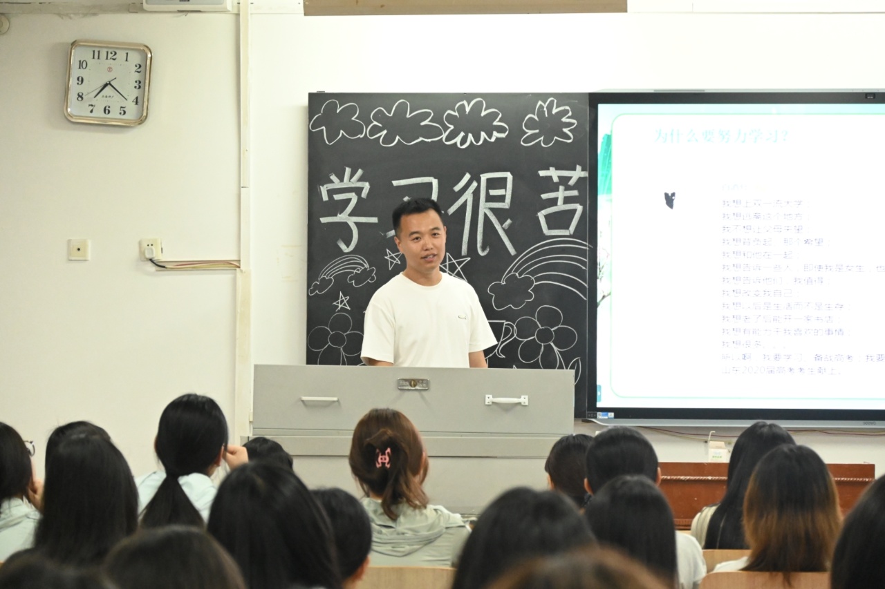 本网讯(通讯员宋施雨 孙玉彤/图文)为引导25级本科新生树立正确的学习观念,激发学习主动性与积极性,营造勤学善思、比学赶超的优良学风,教育科学学院于4月26日在逸夫教学楼N507教室召开“学习很苦,努力很酷”主题班会。本次会议由郭飞主持召开,25年级学生到场参加。