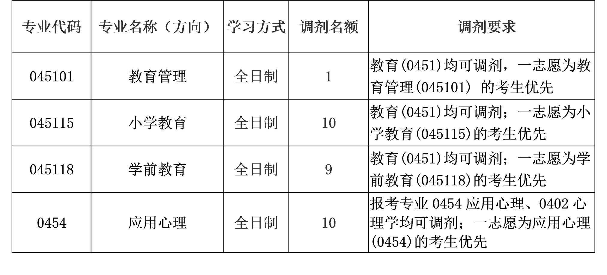 我院招生教育(0451)全日制专业学位硕士研究生,包括教育管理(045101)、小学教育(045115)、学前教育(045118);应用心理(0454)全日制专业学位硕士研究生。