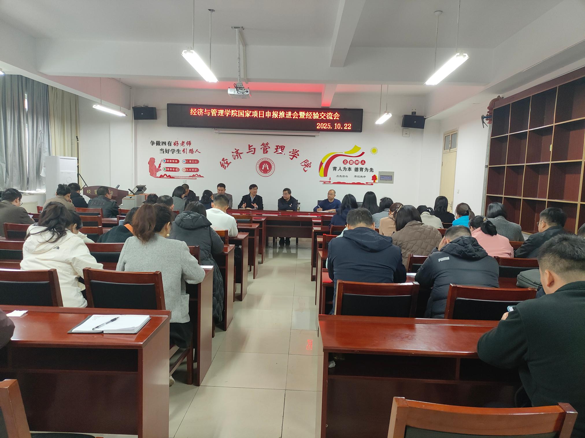 (通讯员 牛亚丽)10月22日,经济与管理学院在科技楼201会议室举行2026年度国家级项目推进会,旨在提升科研创新水平、明确申报攻坚方向。会议由经管学院院长姜长宝主持,经管学院全体教师参加。