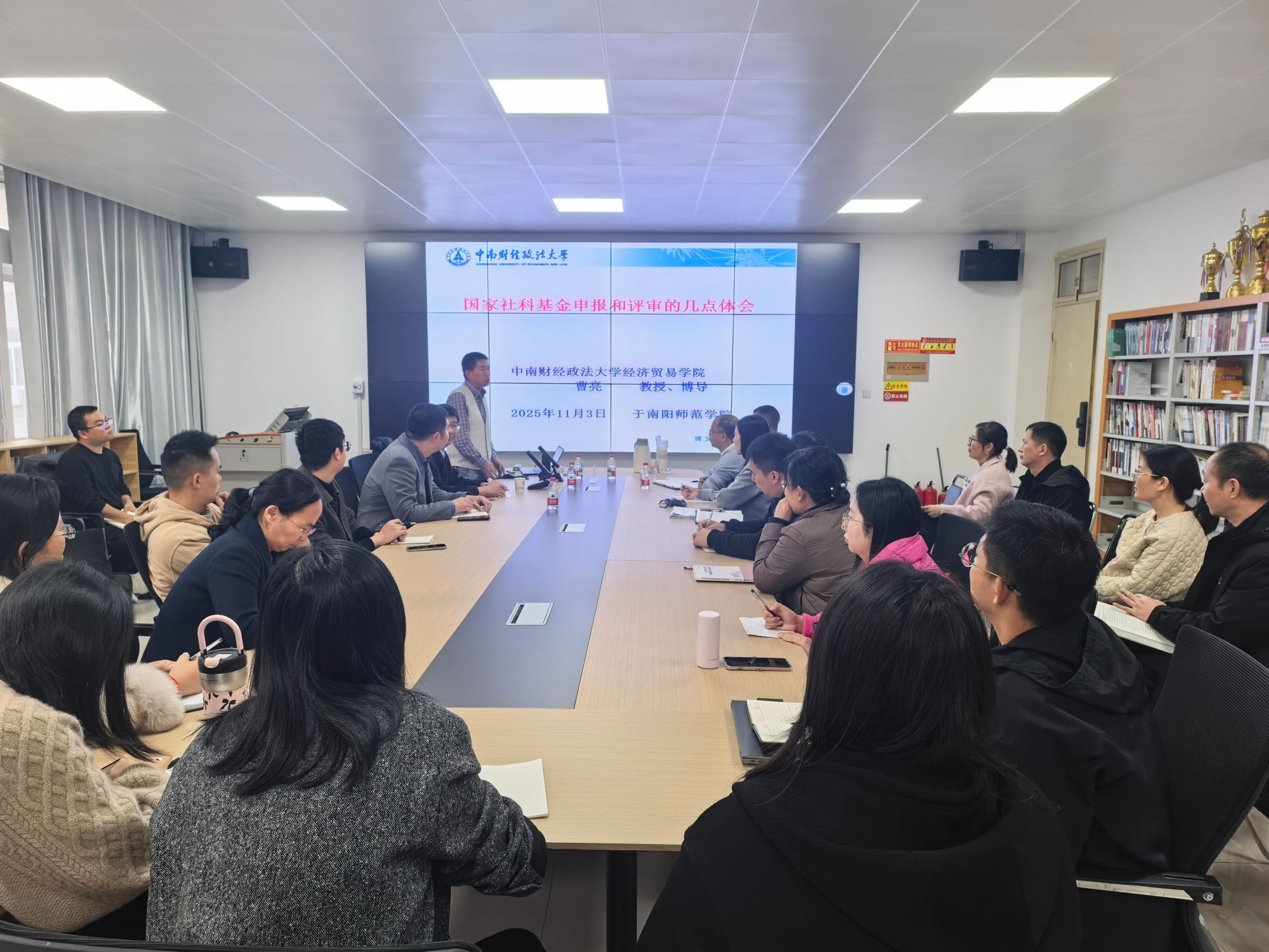 11月3日下午,我院特邀中南财经政法大学博士生导师曹亮教授以“国家社科基金申报和评审的几点体会”为主题在科技楼516为我院教师作专题讲座,院长姜长宝主持,学院博士、副教授教师参会。