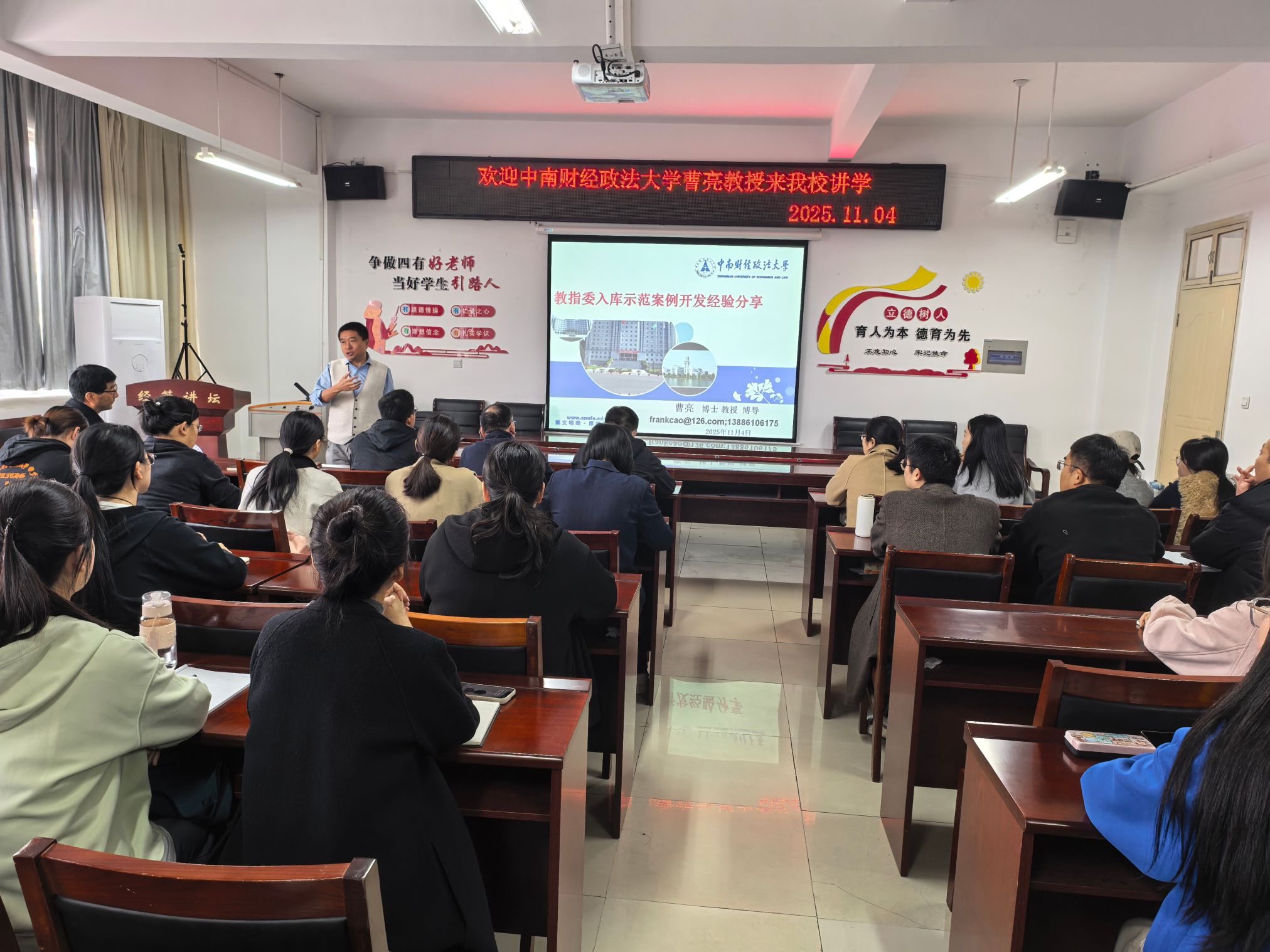 11月4日上午在科技楼201会议室,中南财经政法大学教授、博士生导师,国际贸易学博士导师组组长、国际商务研究所所长,国务院学位办全国国际商务专业学位研究生教学指导委员会委员曹亮应邀到我院作学术报告。报告由姜长宝院长主持,经济与管理学院部分老师、本科生、全体研究生参加。