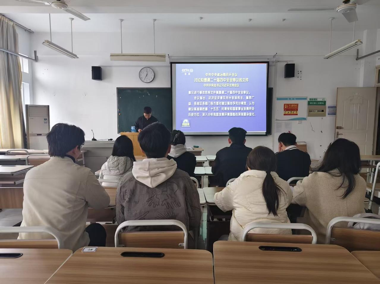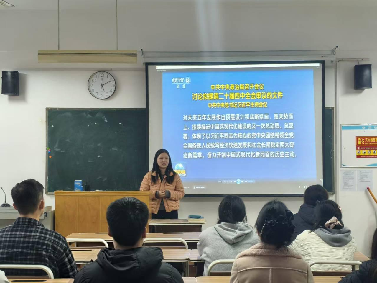 活动伊始,党支部书记为党员们播放了党的二十届四中全会的视频,各党支部共同学习了党的二十届四中全会精神。随后,党支部书记向全体党员详细解读了党的二十届四中全会公报,引导全体党员深刻领会其精神精髓与核心要义。党员们纷纷表示,未来将会把党的二十届四中全会精神转化为学习动力,努力成为兼具家国情怀与专业素养的新时代优秀学子。