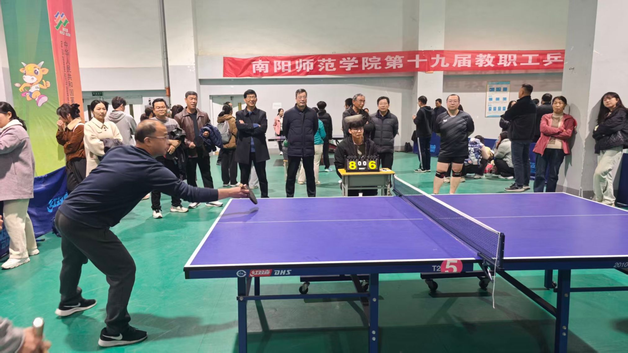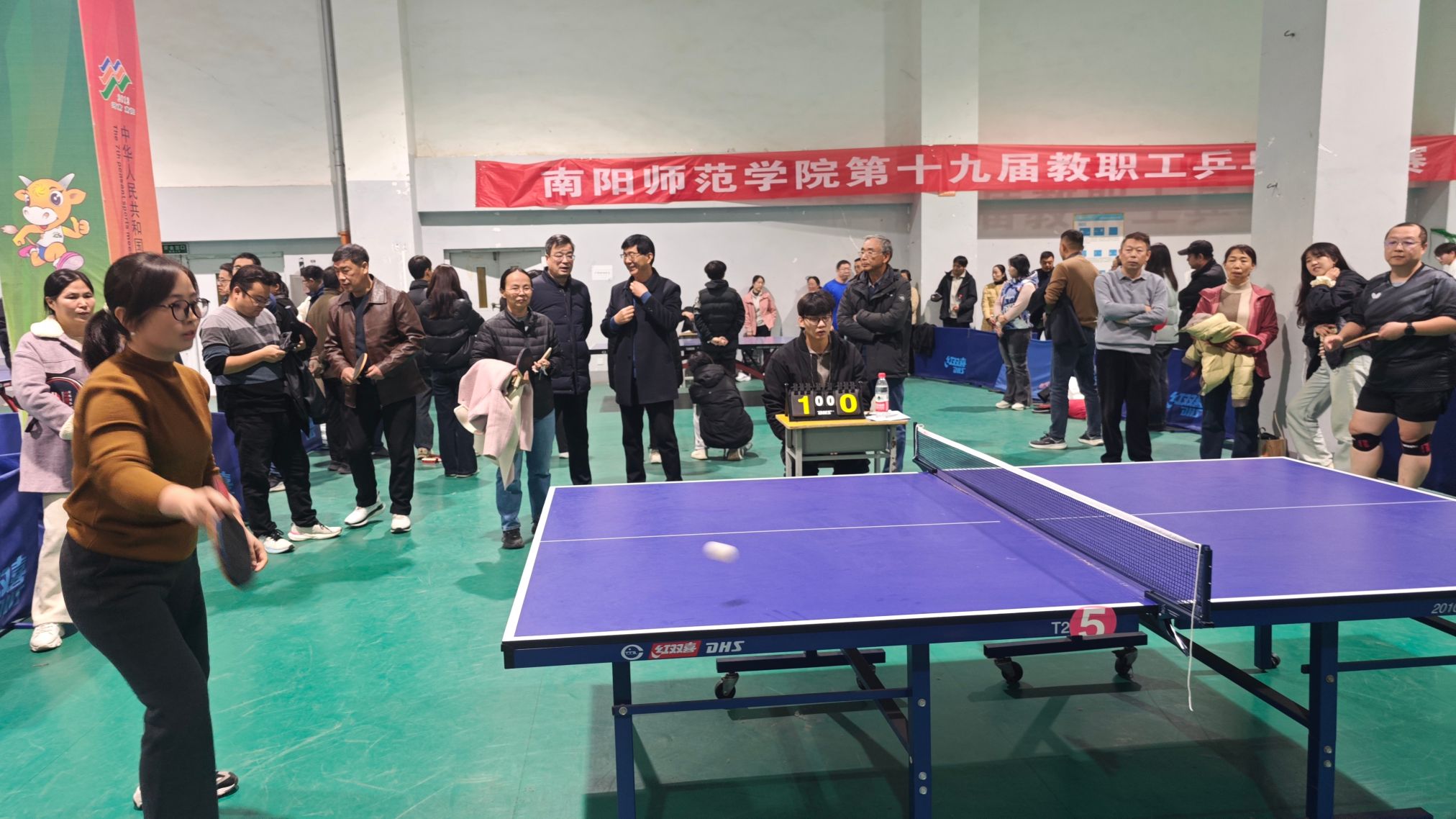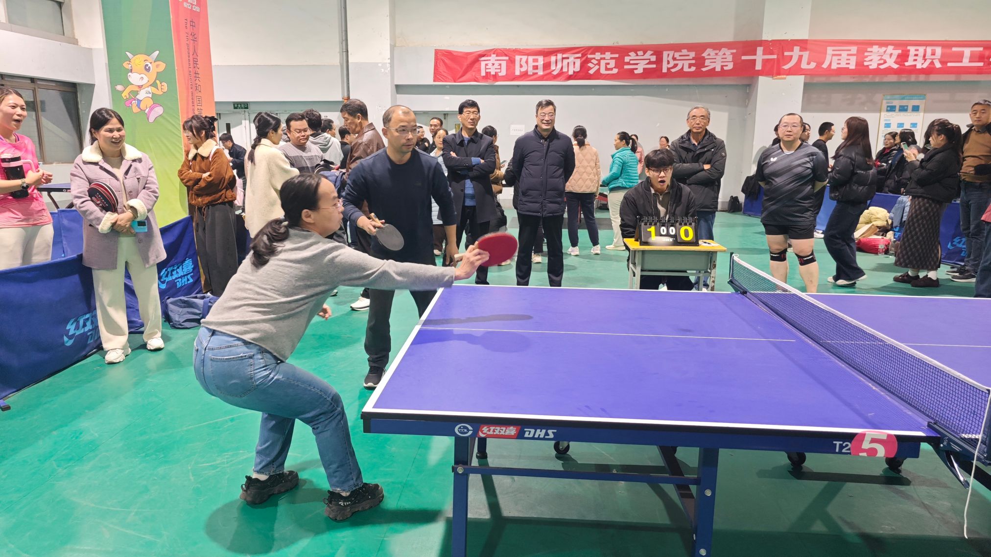 本网讯(通讯员 胡娟 文/图)11月26日,为了响应全民健身的号召,进一步提高教职工的身体素质,丰富教职工的文化生活,经济与管理学院分工会积极组织并参与了由南阳师范学院工会主办的“第十九届教职工乒乓球比赛”。
