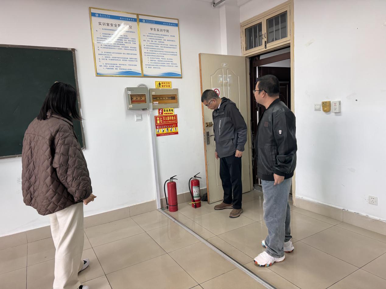 本网讯(通讯员李权/文李权/图)根据《河南省高校第五届实验室安全文化宣传月活动的通知》(豫高实〔2025〕5号)要求,为进一步加强我校实训室安全管理,提升师生实训室安全素养,营造安全、稳定、和谐的校园环境。南阳师范学院经济与管理学院于10月23日组织开展了实训室安全检查活动。副院长鲍春生带领实训室全体管理人员对实训室进行全面排查,并组织制定了详细的实验室安全宣传普及活动方案,安排为新生统一发放实验室安全手册,还组织全体进入实验室的师生签署实验室安全承诺书。