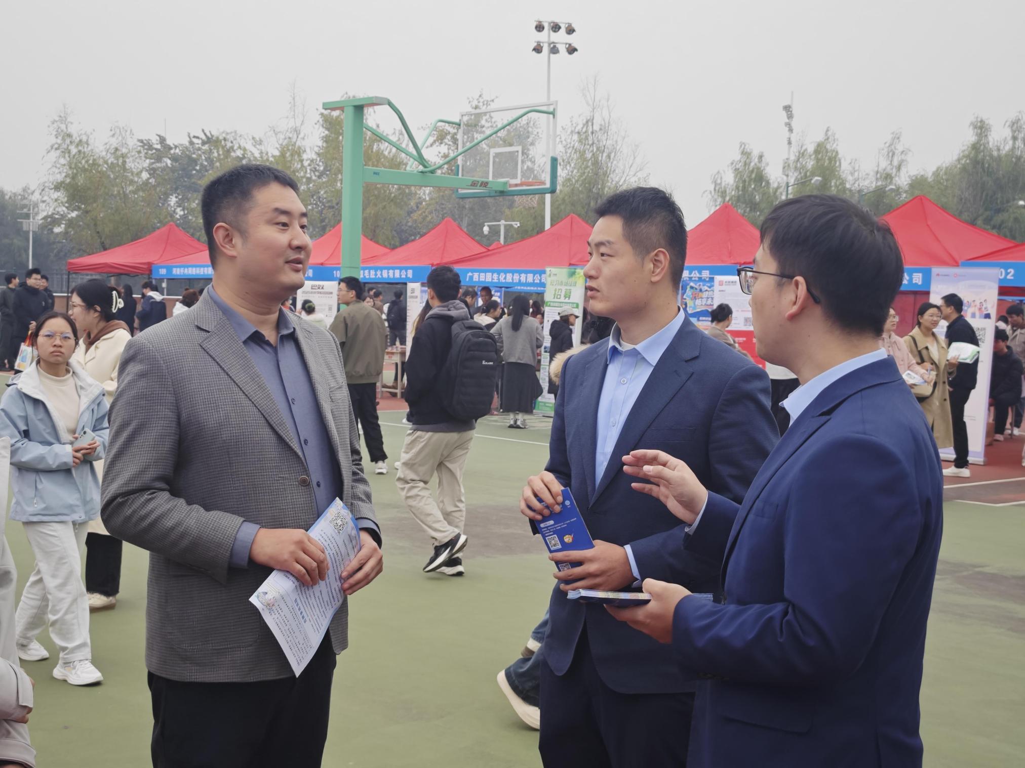 双选会现场各企业招聘代表通过展板展示企业文化、岗位需求及发展前景,与毕业生面对面交流,详细解答薪资待遇、职业晋升等疑问。双选会期间,杨宏健与王传飞为毕业生提供相关就业指导服务,帮助学生精准定位职业方向。双选会结束后,部分学生表示现场与企业已达成初步就业意向。