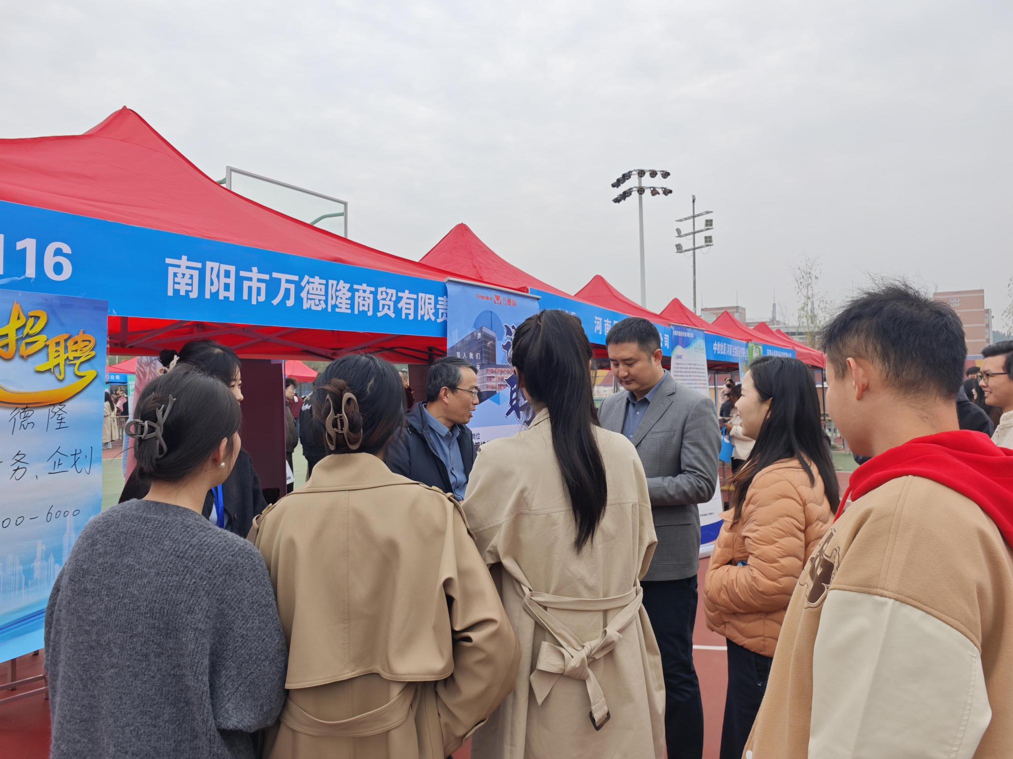本网讯(通讯员樊果/文张昭阳/图)10月24日,河南省毕业生就业市场南阳分市场暨南阳师范学院2026届毕业生秋季大型双选会在中区篮球场举办。本次双选会由河南省教育厅主办,河南省大中专学生就业服务中心、共青团南阳市委南阳市人才交流中心、南阳市人才服务中心与南阳师范学院联合承办。我院党委书记杨宏健现场指导,党委副书记王传飞、辅导员深入对接,2026届毕业生积极参加。