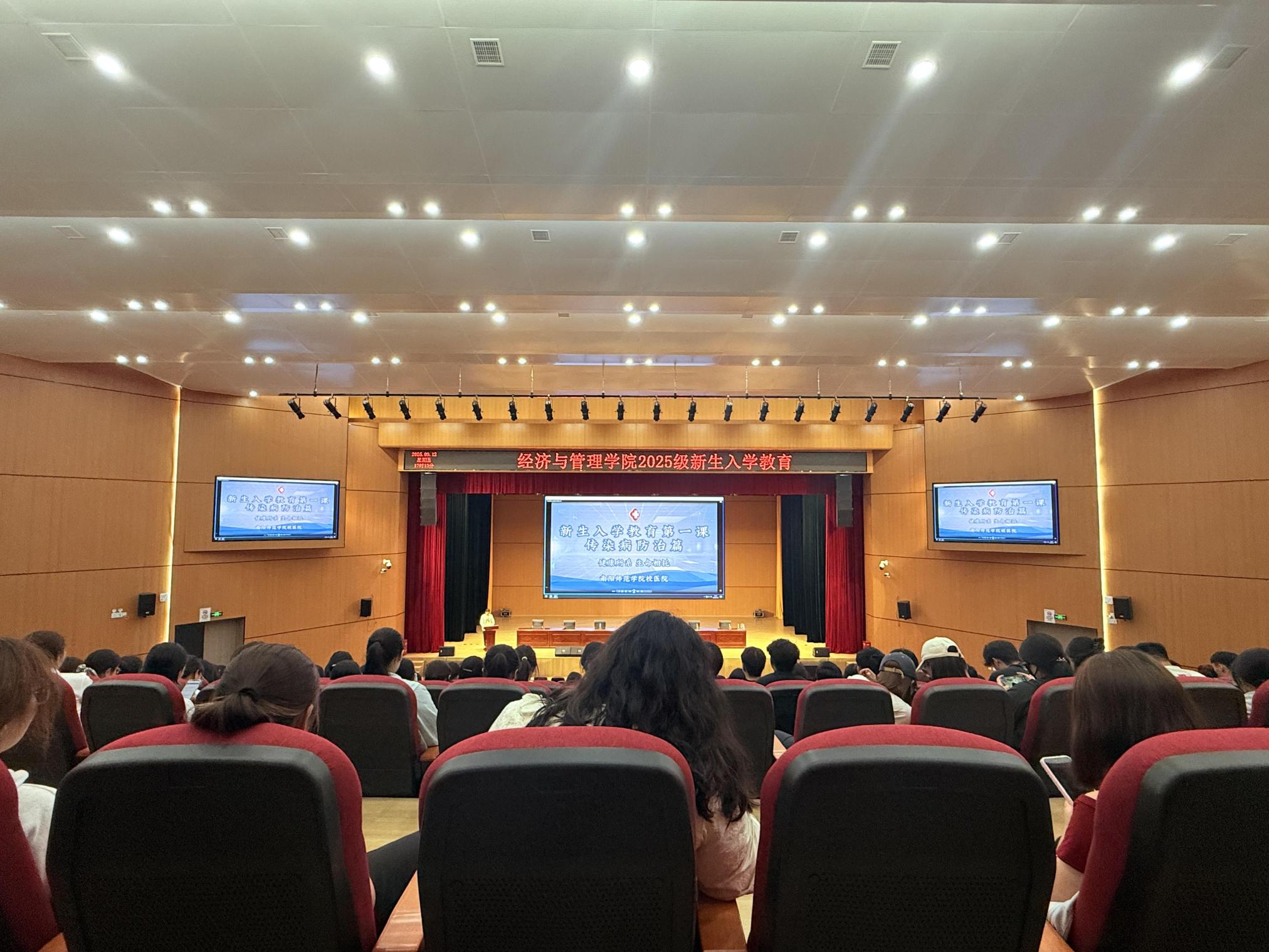 本网讯(通讯员 陈莹/文 李冰/图)为帮助新生快速掌握传染病防治知识,筑牢校园健康安全防线,9月13日,经济与管理学院于报告厅开展新生入学传染病防治知识教育。本次活动由我院李冰老师主持,我院新生积极参加。