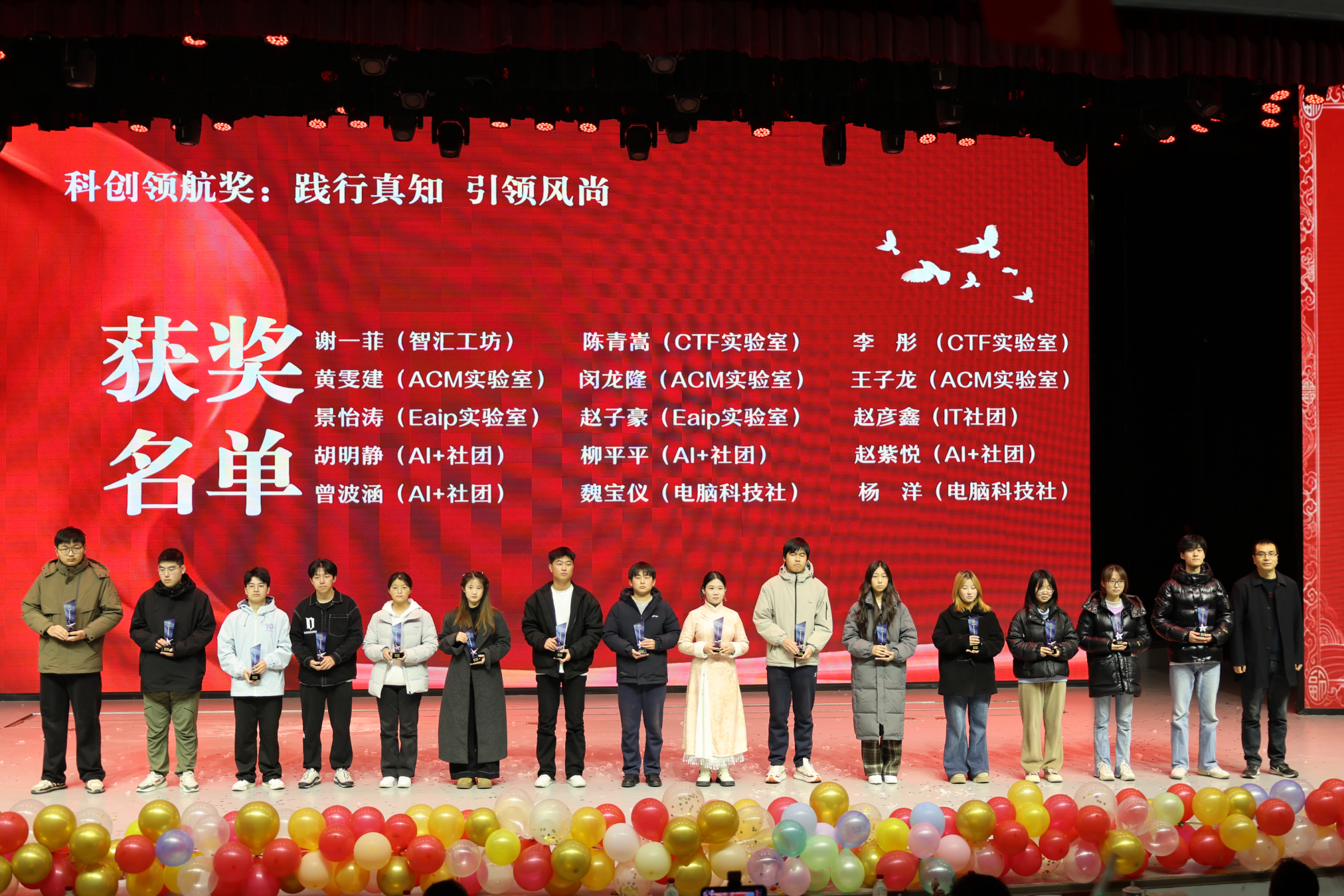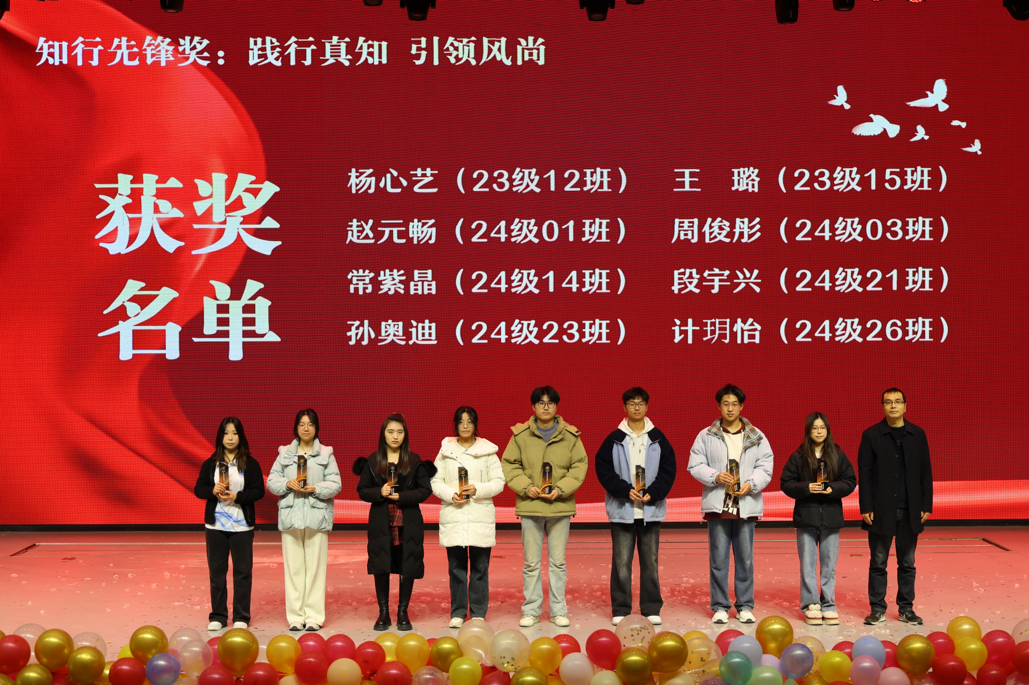 演出间隙,学院还为在专业学习、社会实践、学科竞赛与班级建设等领域取得优异成绩的师生代表们颁发荣誉奖杯,热烈的掌声定格了属于奋斗者的高光时刻,榜样的力量在青春的舞台上熠熠生辉。