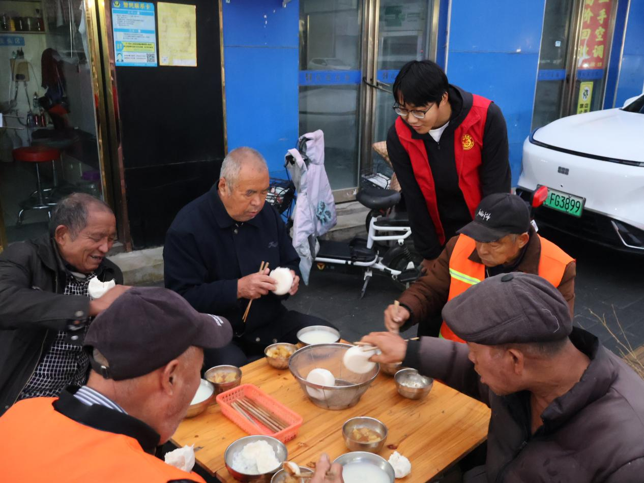 活动当天,志愿者们早早抵达爱心粥铺,迅速投入到有序的筹备工作中,大家分工协作,有的认真摆放桌椅、规整用餐区域,有的专注熬煮热气腾腾的爱心粥,有的细心分装爽口配菜,用默契配合为就餐人员打造温馨舒适的用餐环境。随着环卫工、孤寡老人等就餐人员陆续到来,志愿者们主动上前问好,贴心地为他们盛粥、递上热饮,将一份份饱含暖意的早餐送到大家手中,用真诚的笑容和热情的服务让就餐人员在清晨感受到浓浓的善意与社会的关怀。活动尾声,志愿者们一丝不苟地收拾碗筷、清洗餐具,仔细擦拭桌椅、清扫地面残留杂物,不放过任何卫生死角,用实际行动为活动画上圆满句号。