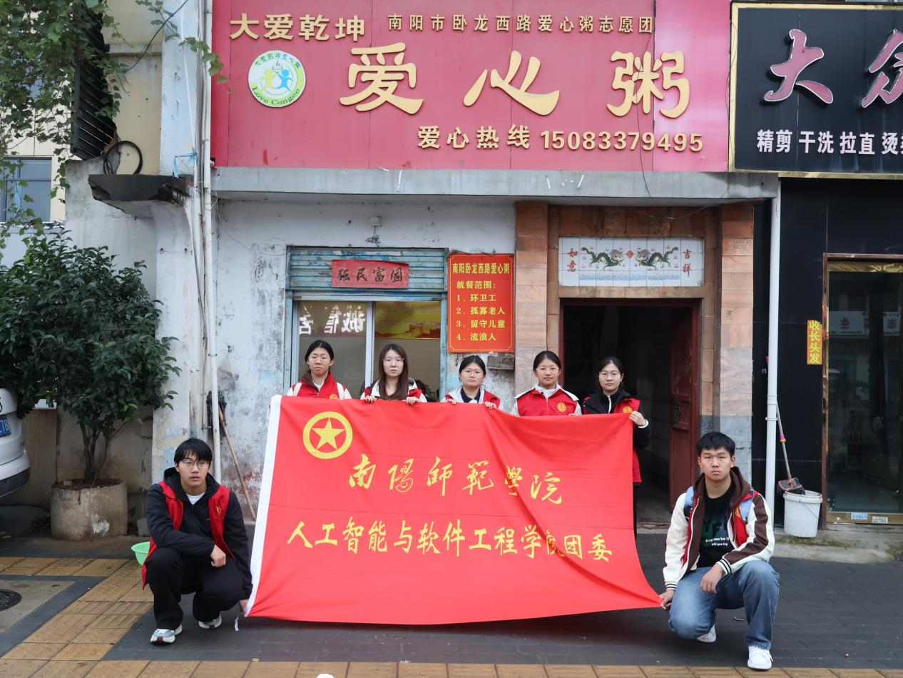 本网讯(通讯员 柳艳鹤/文 刘朔溥/图)为传递社会温暖,弘扬互帮互助的传统美德,11月8日,人工智能与软件工程学院志愿服务部于卧龙区爱心粥堂开展“粥香漫染烟火气,善举传递真温情”志愿服务活动。本次活动由志愿服务部主持,青年志愿者参加。