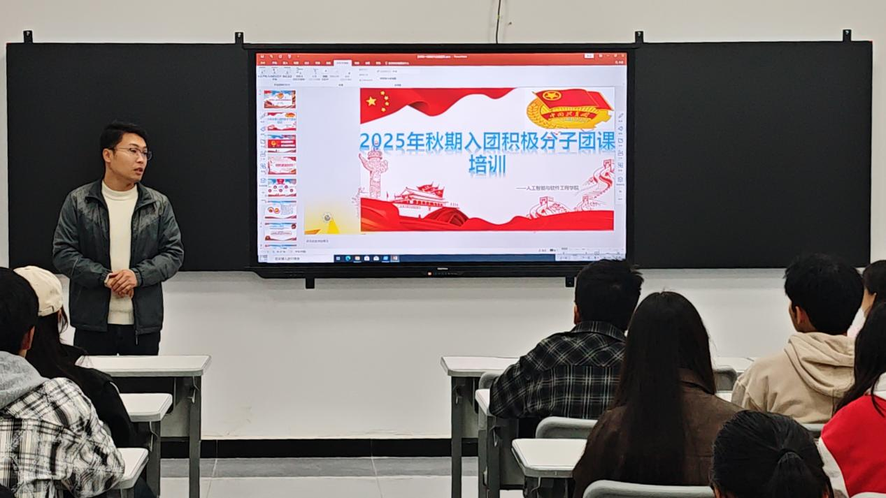 本网讯(通讯员 徐子铭 杨修贤/文 吴岳双 杨怡欣/图)为进一步引导青年学生坚定理想信念、厚植爱国情怀,加强团组织建设,11月10日至12日,人工智能与软件工程学院于西区张衡楼和淅川校区教学楼开展为期三天的2025年秋季发展团员培训大会,本次学习由辅导员张明、郭康达、崔纪宏和孙炎主持,全体入团积极分子参加。