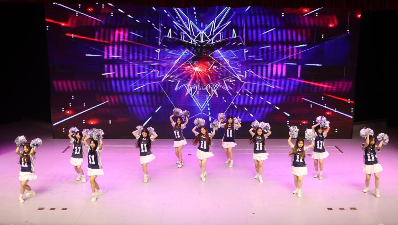 本届大赛秉持公平公正公开原则,经过院级初赛、校级复赛的重重遴选,人工智能与软件工程学院街舞《Let’s go》和啦啦操《星芒跃动》成功入围总决赛。首轮街舞比赛中,舞者们肢体的每一次舒展、每一次律动都精准契合节拍,在光影交错中勾勒出青春最张扬的模样,他们默契十足的配合、饱满投入的状态,传递出“即刻出发、无畏前行”的积极态度,让现场观众感受到街舞文化的独特魅力与感染力。啦啦操《星芒跃动》以新颖的编排理念给观众带来独特的视觉体验,队员们身着特色服装,以活力四射的动作表演和富有创意的队形变换充分展现出青春的活力与团队的默契。