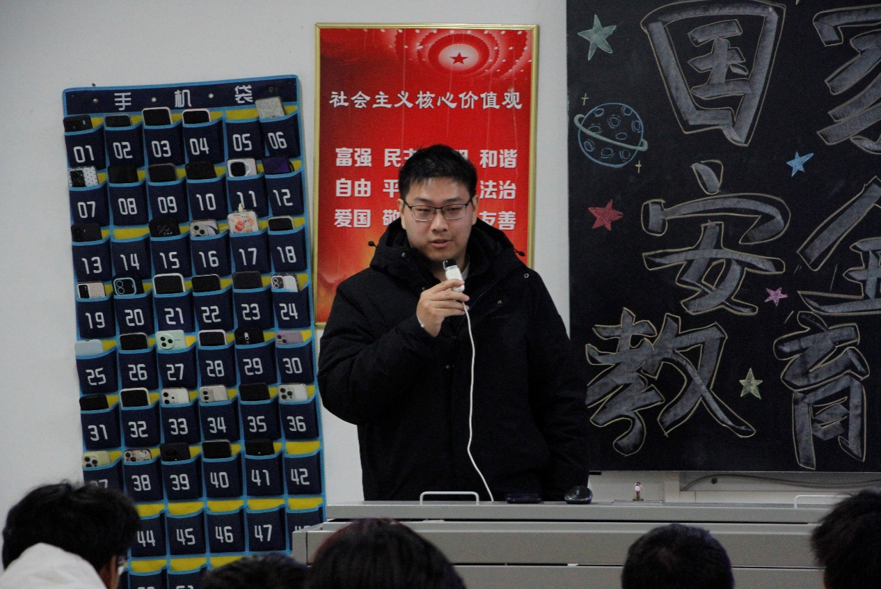 李巧和陈美羲以“案例复盘”和“情景还原”为核心,选取校园中易发生的境外信息诈骗和陌生链接信息窃取等典型场景,让学生体会日常生活中信息甄别、风险应对、日常防护等安全要点。田羽博和李青原组织学生观看有关国家安全重要性的科普教育视频,系统呈现了政治安全、军事安全、科技安全等重要方面的知识,深入了解了总体国家安全观的核心要义。孙炎和崔纪宏通过图表展示了近年来国家安全案件及后果,清晰阐释了维护国家安全的重要性,学生们直观体会到“维护国家安全是公民法定义务”的核心内涵。郭丹宁以问答的形式对学生进行提问,引导学生代入场景并主动思考,对学生的回答逐一点评,让学生在互动中掌握国家安全知识。本次班会让学生深刻认识到国家安全的重要意义,进一步强化了学生的责任意识和法治观念,使国安理念深入人心。