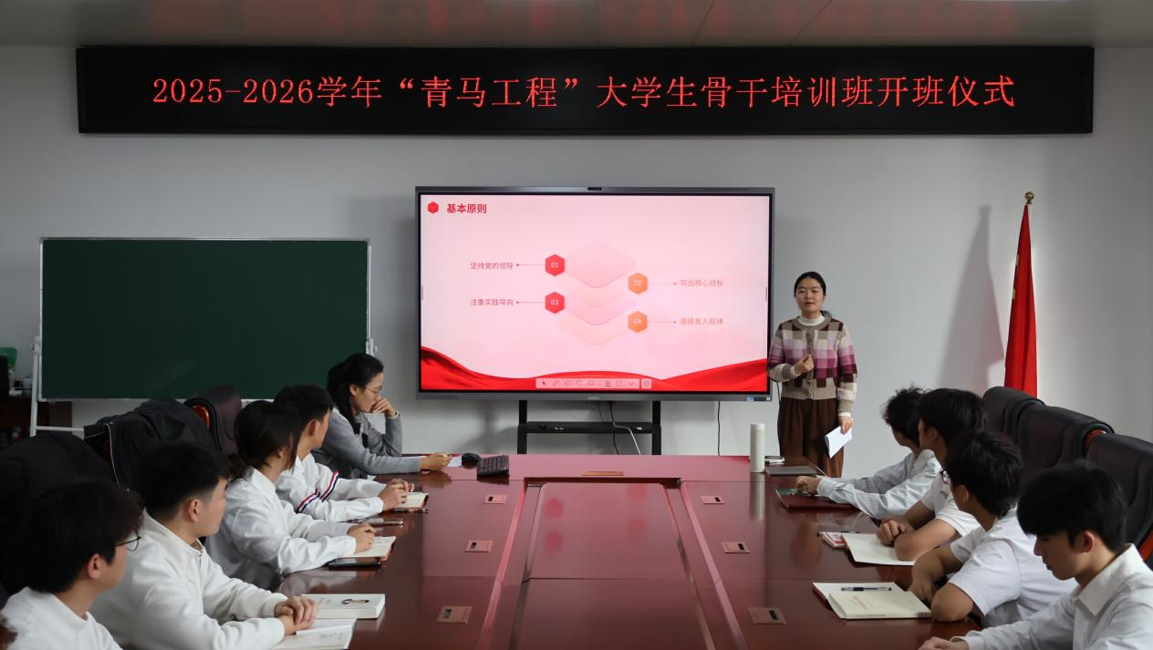 (本网讯通讯员欧阳榜荣苑子恒/文殷慧茹/图)为强化青年学子理想信念,锻造才干出众、素养卓越的学生骨干力量,11月26日,人工智能与软件工程学院于张衡楼225会议室举办2025-2026学年“青马工程”培训班开班仪式。本次开班仪式由人工智能与软件工程学院团委书记陈欣、2023级辅导员张一帆主持,“青马工程”培训班全员参加。