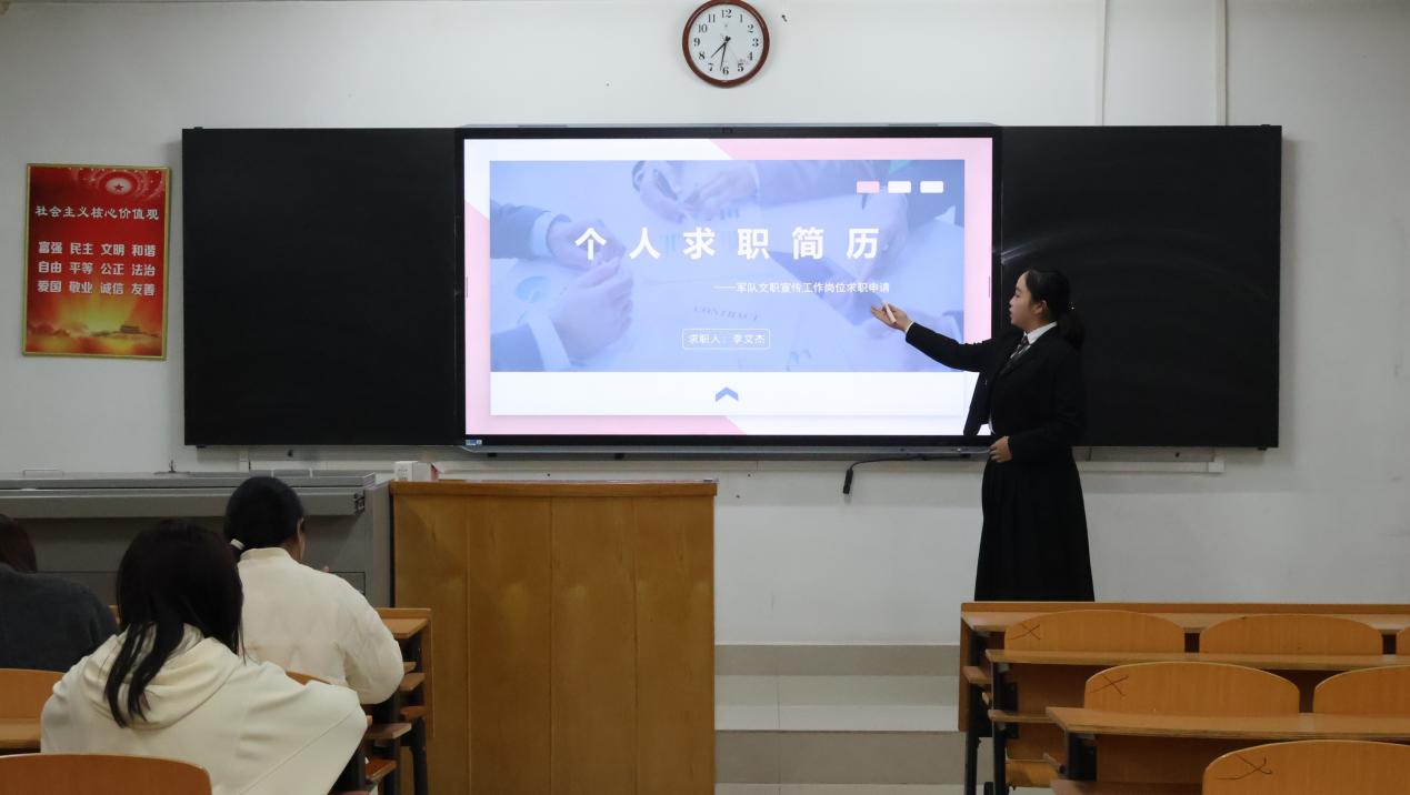 本网讯(通讯员 徐子铭 张欣然/文 宋佳林/图)为引导大学生树立正确的择业就业观念,增强综合素质和能力,11月27日,人工智能与软件工程学院于张衡楼118教室举办职业规划大赛。张颖旗、张一帆、牛朝鑫、王安康四位老师担任大赛评委,共计21位选手参赛。