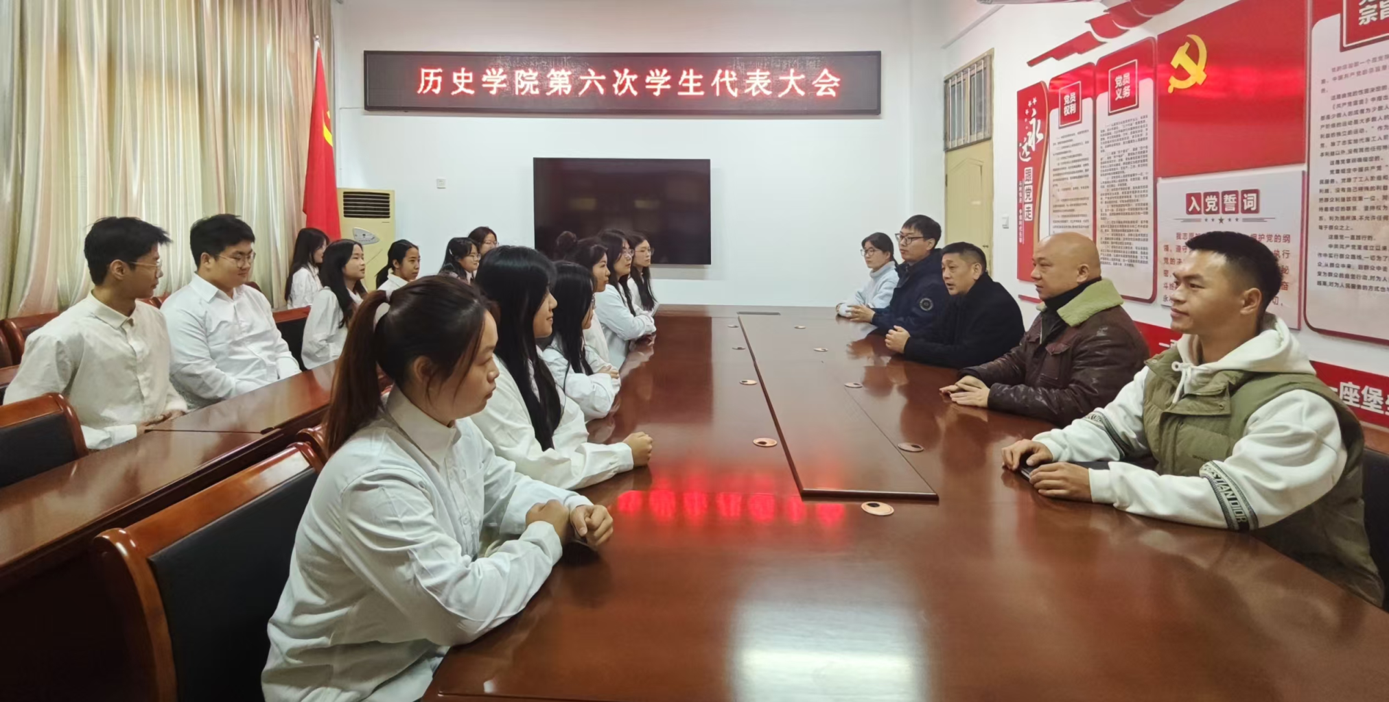 本网讯(通讯员 潘全志 李宇秋/文 代婉琪/图)为深入学习贯彻习近平新时代中国特色社会主义思想,引领广大青年学生在新时代挺膺担当、勇毅前行,11月19日上午,历史学院第六次学生代表大会在逸夫楼C606会议室顺利召开。会议由历史学院院长高二旺主持,党委副书记叶萌,辅导员潘全志、刘宏飞、周嘉璐出席,历史学院学生会主席团成员以及各年级学生代表参加。