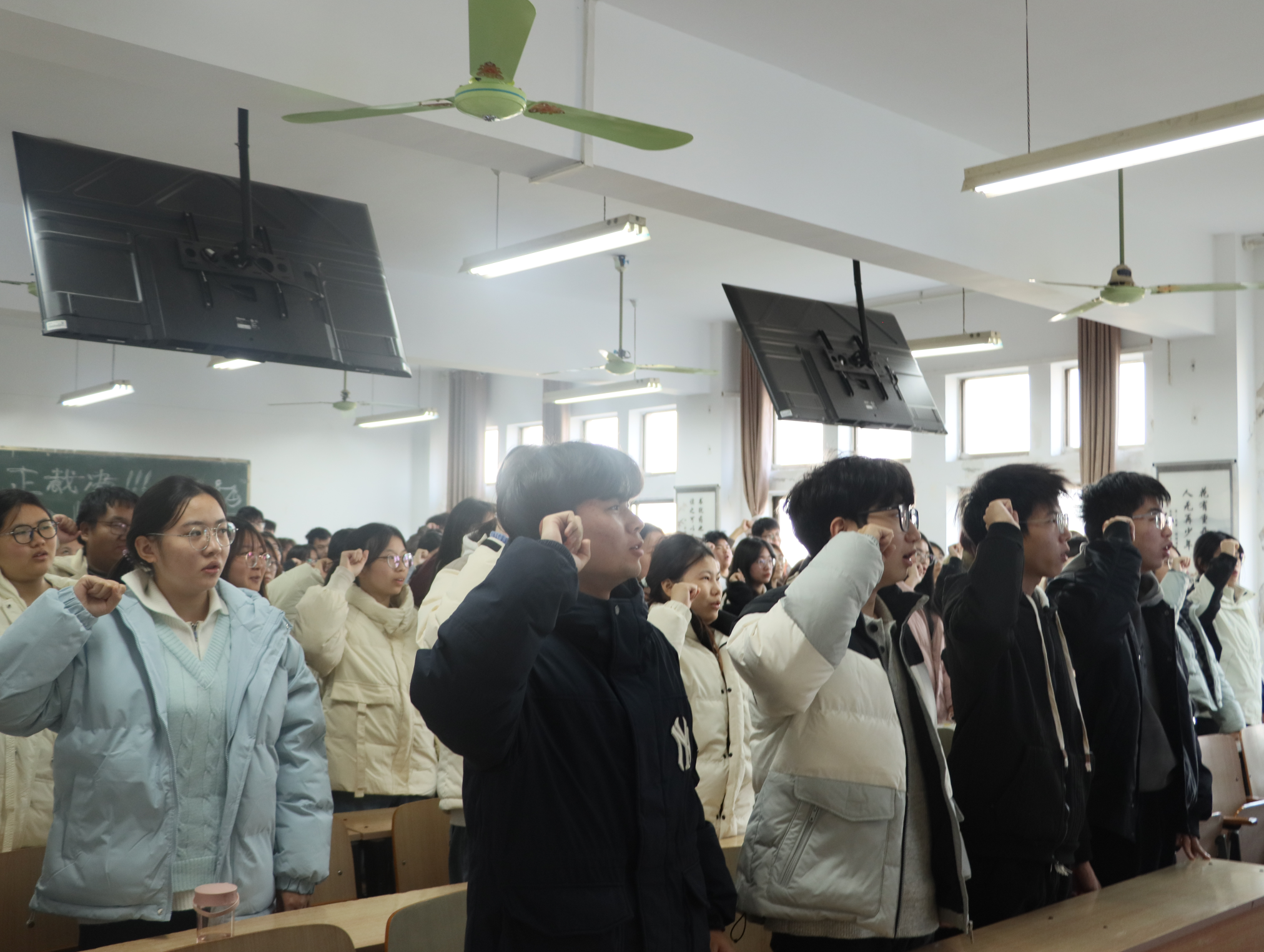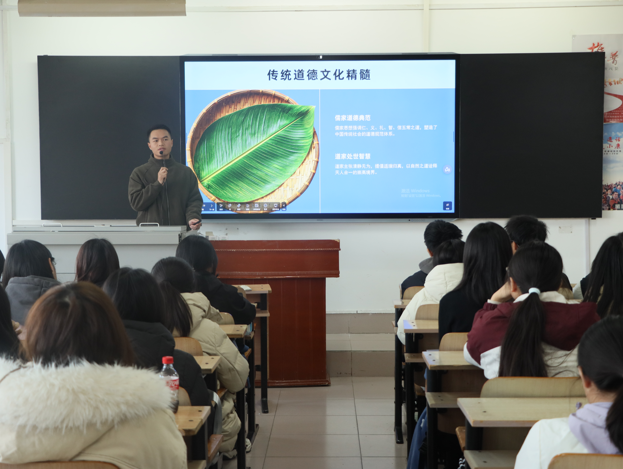 活动伊始,刘宏飞老师从“以德修身,从心出发”的宣讲主题切入,围绕“诚信、友善、勤学、感恩”等关键词,为学生解析个人品德内涵与当代大学生应备品格素养。随后,2025级学生代表羊振娜、胡瀛心、李娅琪、崔文强在刘老师邀请下,分享了学习、生活及志愿服务中彰显品德风范的真实故事,他们以“小我”诠释“大德”,用鲜活叙事传递身边榜样的磅礴力量。此外,刘老师增设学生自由交流环节,鼓励大家畅谈道德困惑与成长感悟,并寄语同学们以诚信立身、参与公益,在践行道德中凝聚向上价值共识。最后,活动进入道德承诺仪式——“让青春闪光于德行”环节,学生代表引领全体同学立下庄重誓言,让道德自觉在仪式中内化于心。讲堂结束后,同学们纷纷表示此次活动不仅是指引前行方向的“精神灯塔”,更是锤炼品格担当的“成长课堂”,激励着他们将内心感动转化为服务社会的实际行动。