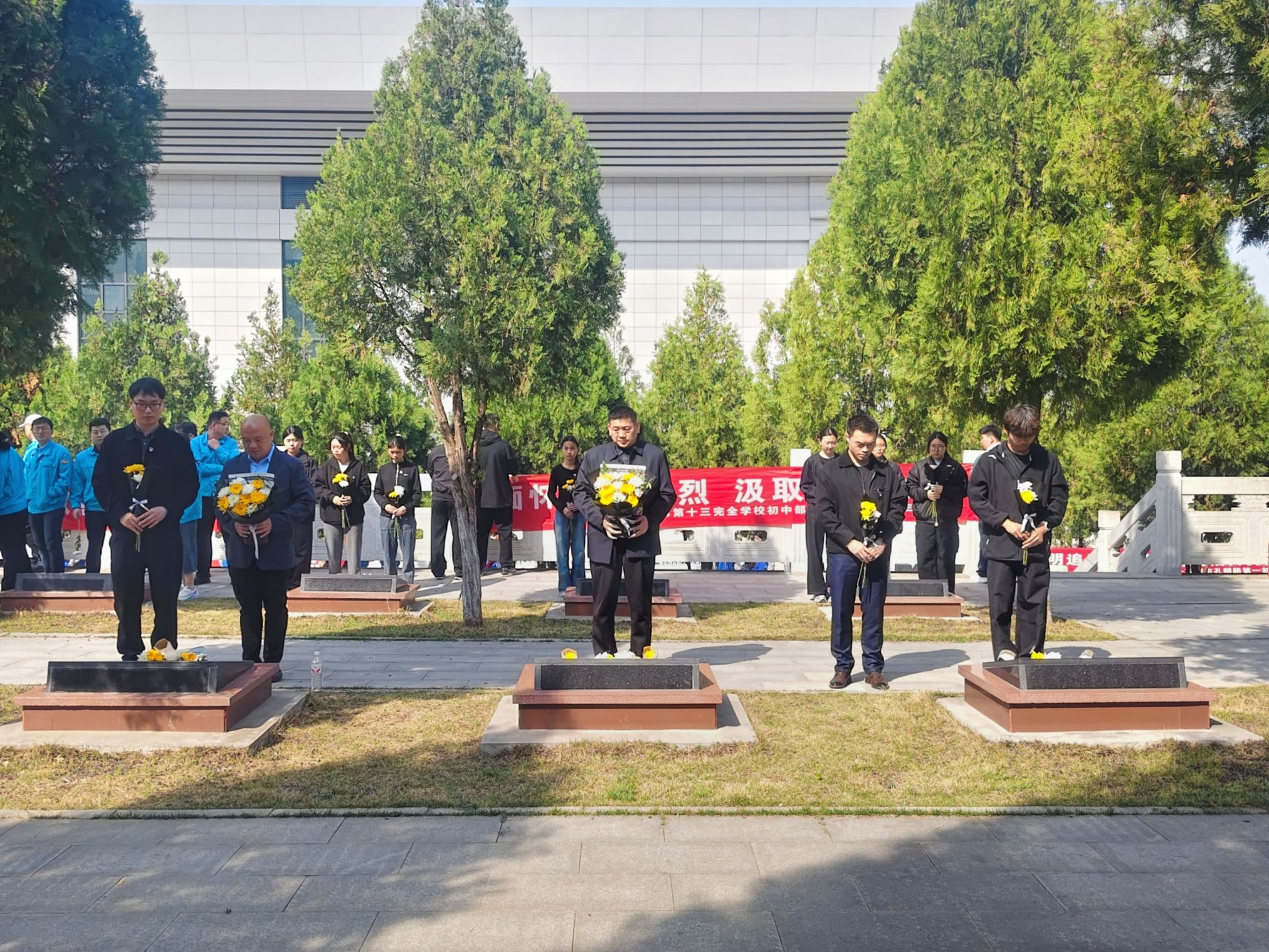 祭扫仪式在庄严肃穆的氛围中正式启幕。全体师生整齐列队,面向烈士纪念碑肃立,集体默哀,向为民族独立、人民解放英勇献身的革命先烈,致以最崇高的敬意,表达最深切的缅怀。默哀毕,师生们依次缓步上前,敬献鲜花、鞠躬致哀,以庄重仪式寄托无限哀思。献花仪式结束后,师生们分组前往墓区,细致擦拭墓碑、捡拾垃圾,以志愿行动守护英烈安息之地,用真诚劳动表达对先烈的崇敬与追思。