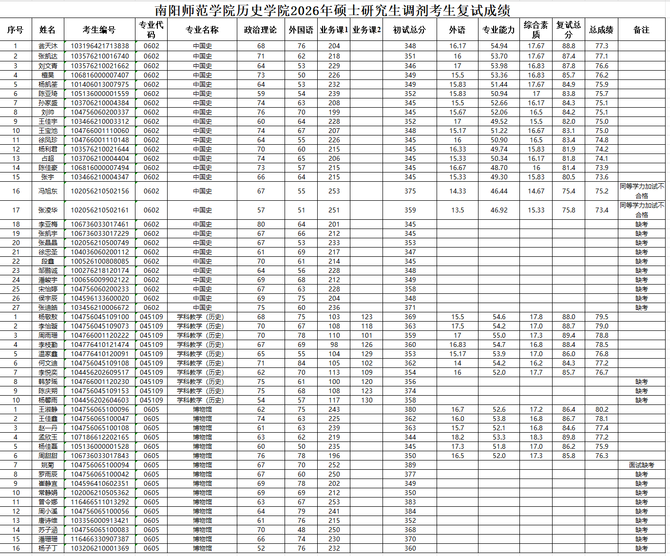 历史学院2026年硕士研究生第二轮调剂复试日程安排