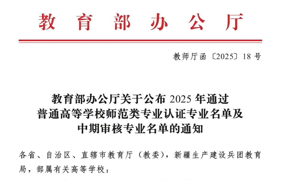 本网讯 近日,教育部办公厅发布《关于公布2025年通过普通高等学校师范类专业认证专业名单及中期审核专业名单的通知》(教师厅函〔2025〕18号),马克思主义学院的思想政治教育专业顺利通过师范类专业中学教育第二级认证,认证结论有效期六年,自2025年9月起至2031年8月止。 师范类专业认证是建立健全高等教育质量保障体系的重要环节,对深化教育教学改革和提高人才培养质量具有重要作用。马克思主义学院始终把师范教育作为立院之本和发展之基,持续深化教师教育改革,以专业认证为抓手,不断提升师范生培养质量,健全师范人才培养协同机制,推进师范类专业建设高质量发展。