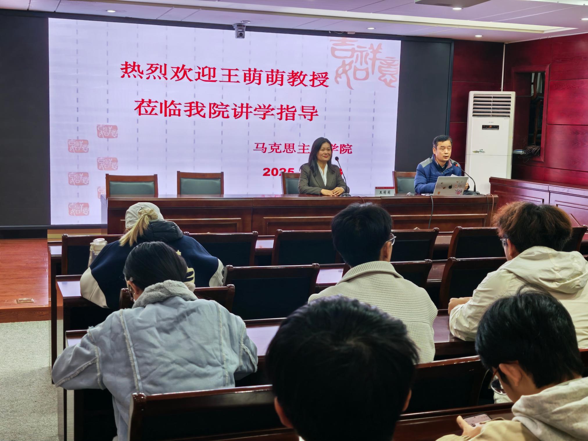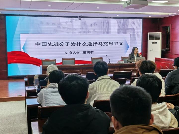 本网讯(吴若飞/文尹帅/图)2025年10月23日上午,湖南大学王萌萌教授应我校马克思主义学院邀请,在办公楼一楼东会议室作题为《中国先进分子为什么选择马克思主义》的学术报告。本次报告由马克思主义学院副院长焦金波主持,学院师生代表参加。