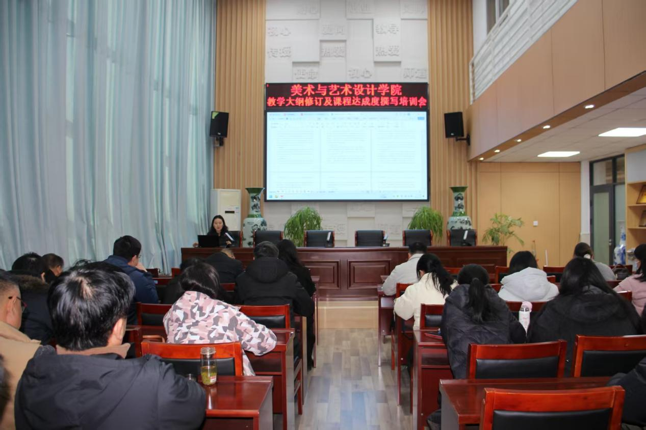 为精准落实新版人才培养方案要求,提升教学大纲撰写规范性与课程质量把控能力,12月3日,美术与艺术设计学院于艺术楼三楼会议室召开2025版教学大纲修订及课程达成度撰写培训会,本次会议由学院教学秘书卢娜老师主持召开,我院全体老师参会。
