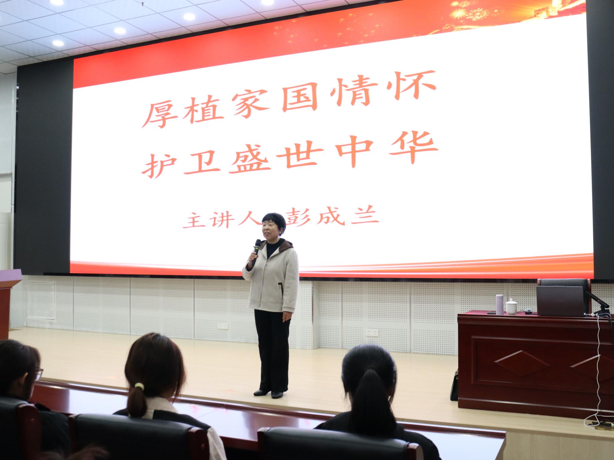 讲座伊始,彭成兰以南开大学校长张伯苓的“三问”启思,从历史、时代与未来三个维度,深入剖析民族精神的传承、家国情怀的内涵及新时代青年的时代担当。她指出,家国情怀是中华民族的精神核心,是激励中华儿女为民族独立和国家富强不懈奋斗的力量源泉。随后,她列举历代典范人物的事迹,强调青年兴则国家兴,勉励同学们肩负强国使命,在时代浪潮中奋勇前行。接着,围绕如何践行家国情怀,她提出三点期切实望,为同学们指明将家国情怀融入个人理想的实践路径。讲座最后,同学们纷纷表示,定将厚植家国情怀,以实际行动勇担时代使命。